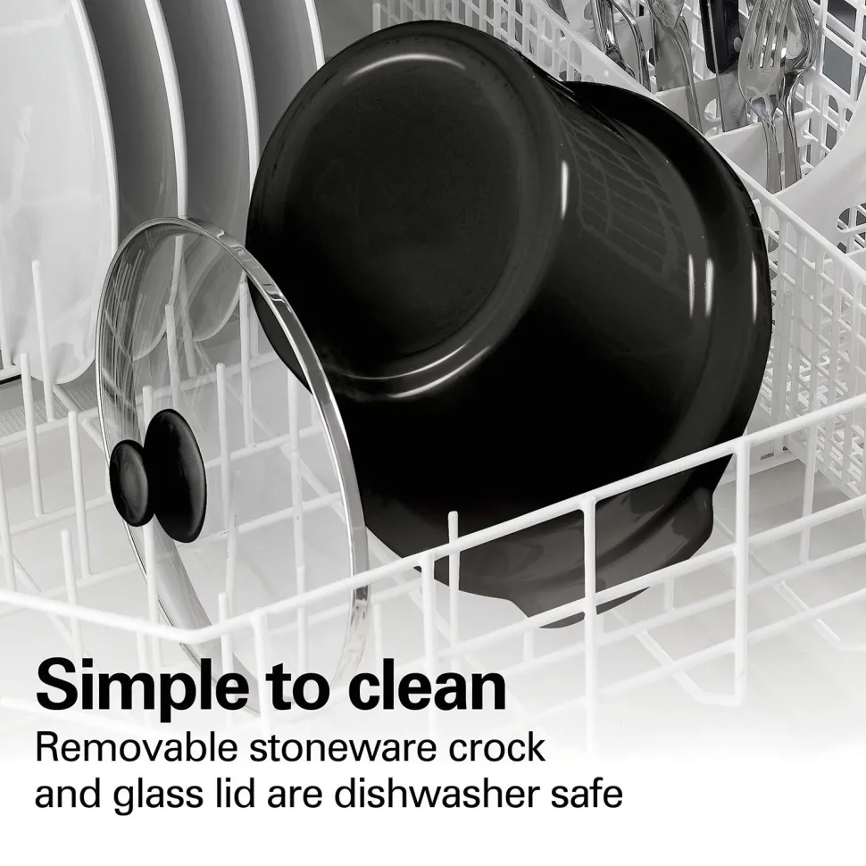This slow cooker has a removable stoneware crock and glass lid that are dishwasher safe and easy to clean.