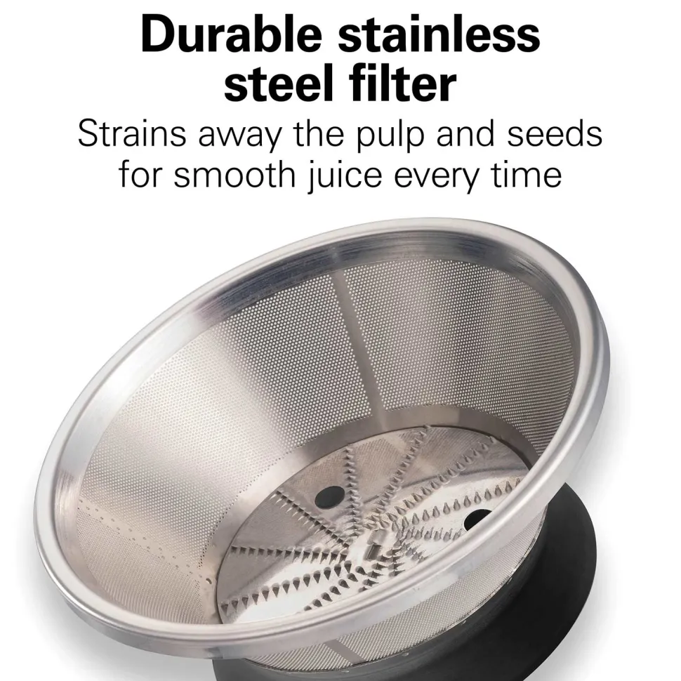 - Durable stainless steel filter for smooth, nutritious juice