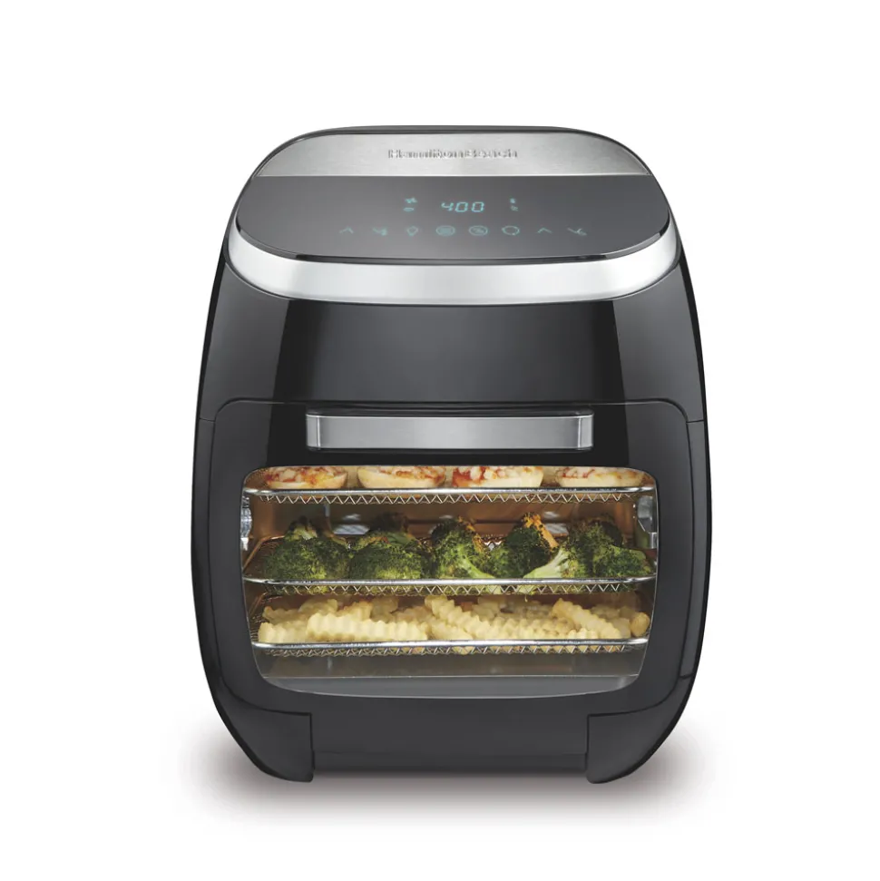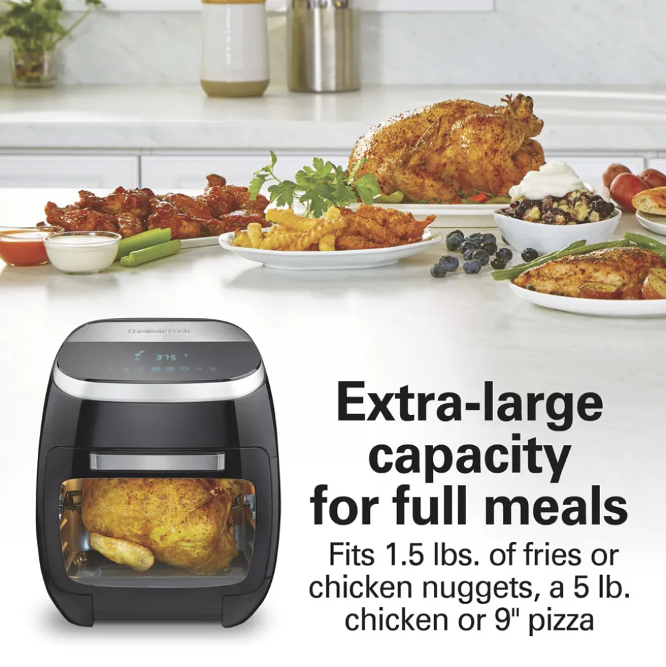 If you want to cook multiple ways but don’t want a cluttered kitchen countertop, you need an appliance that does it all. The Hamilton Beach® 11.6 Qt. / 11 Liter Digital Air Fryer Oven with Rotisserie is perfect for families who want maximum cooking versatility and need room for preparing large meals. The oven has 5 rack positions and will fit 1.5 lb. of fries or chicken nuggets, a 5 lb. chicken or a 9″ pizza. Once you have this air fryer oven in your kitchen, you’ll find yourself using it every day from breakfast to dinner.