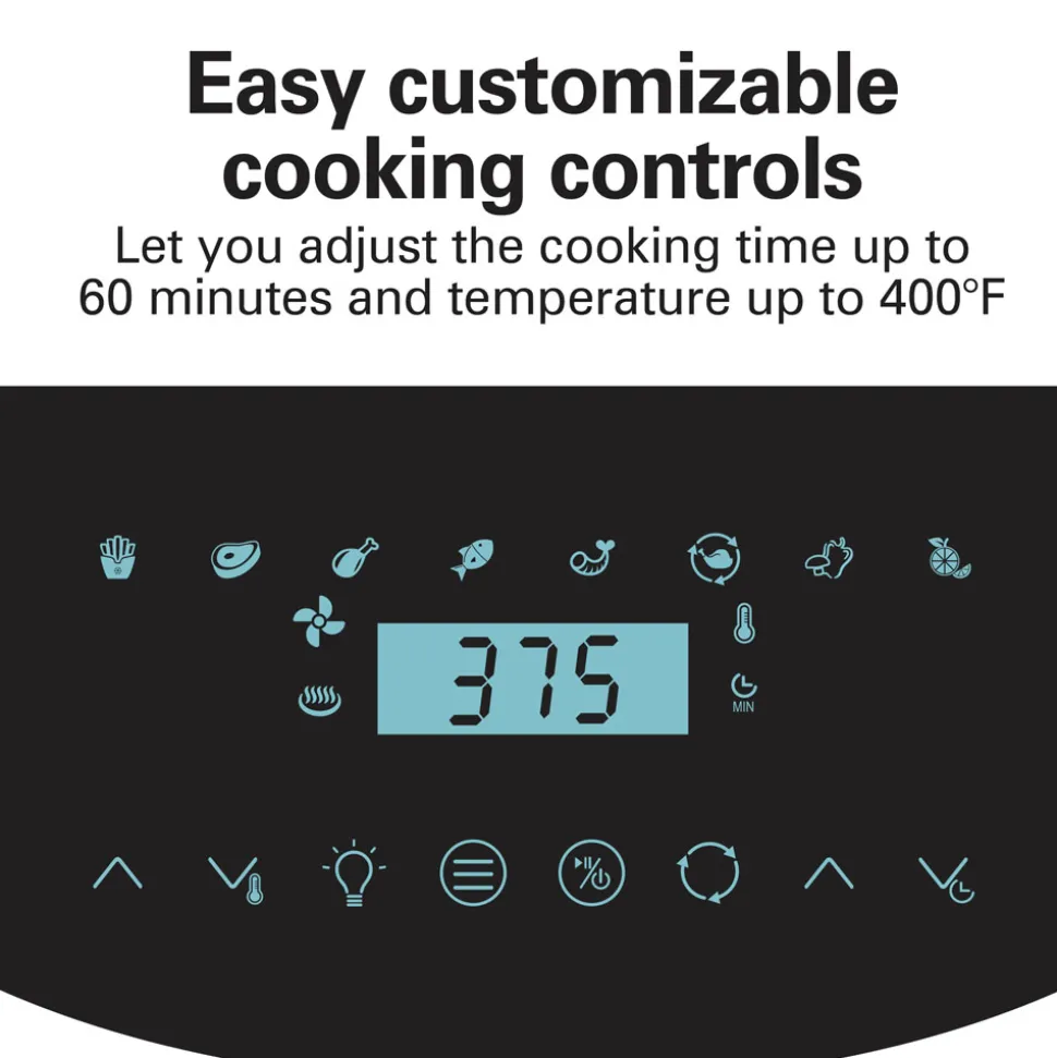 Customize your cooking with this air fryer oven by manually adjusting the time and temperature up to 60 minutes and 400°F.