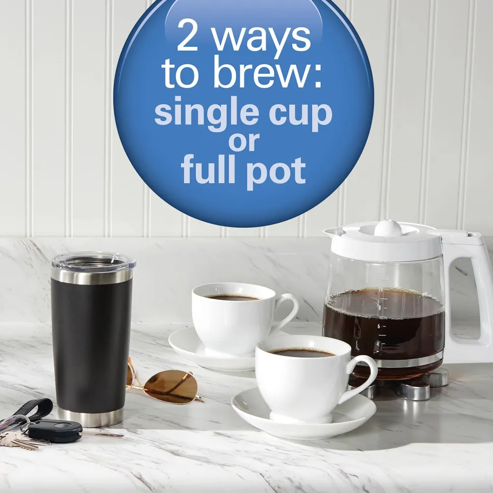 - 2 ways to brew: single cup or full pot