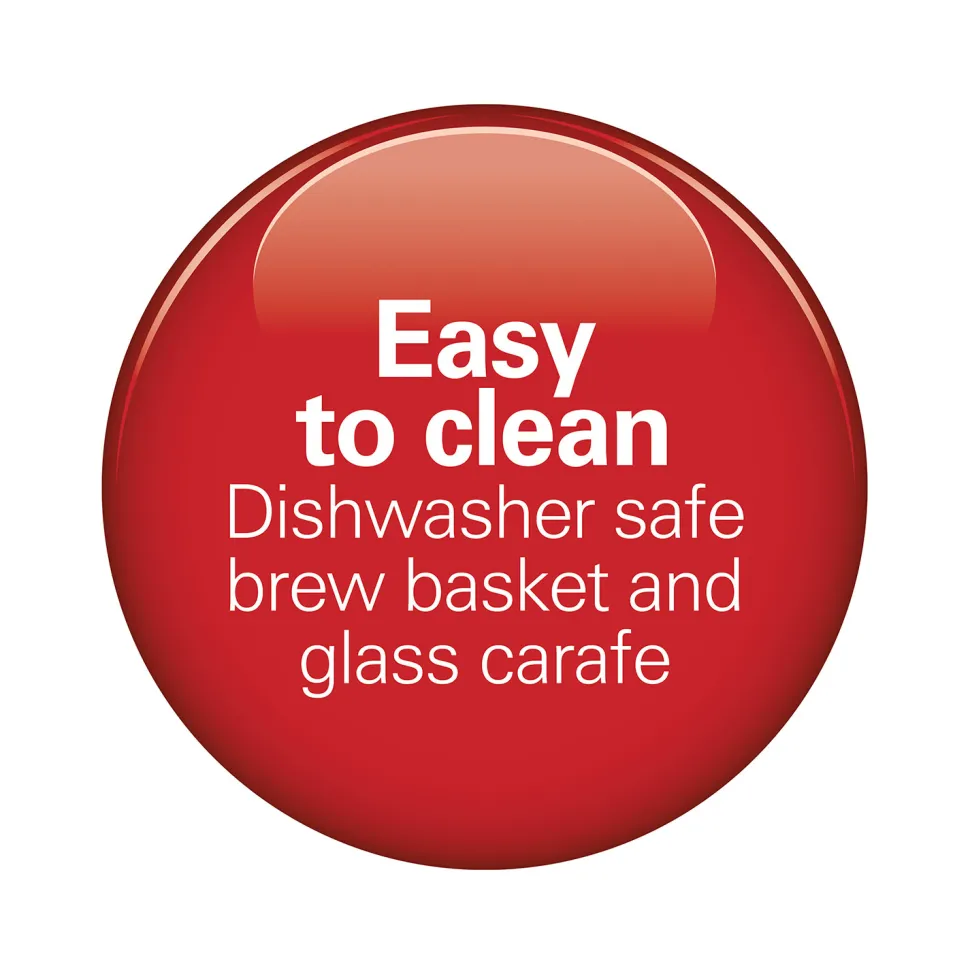 - Easy to clean with dishwasher safe brew basket and glass carafe