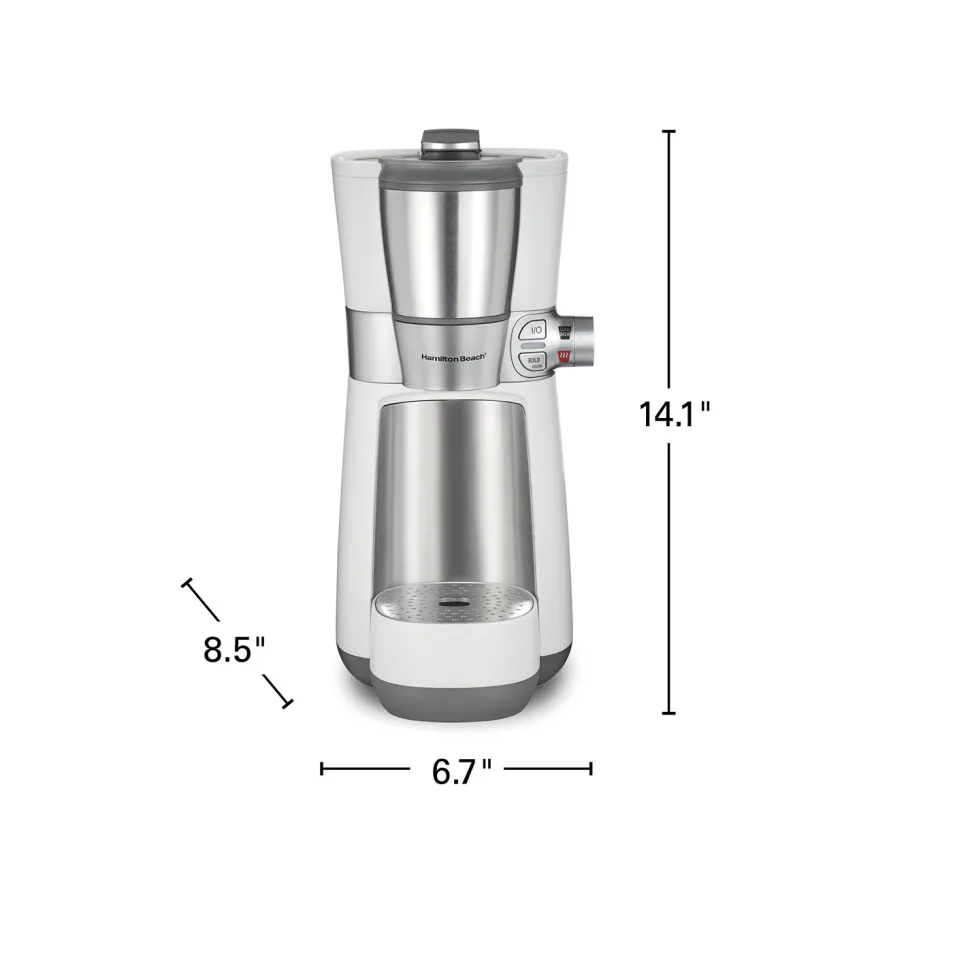 With other cold brew coffee makers, it can take 12 to 24 hours to make cold brew coffee. Why wait that long? With the Hamilton Beach® Convenient Craft™ Rapid Cold Brew & Hot Coffee Maker, you’ll enjoy smooth, cold brew coffee in less than 6 minutes. When you want to brew a cup of piping-hot coffee, the wait is even shorter — it takes just 3 minutes to brew a cup of hot coffee. Whether you brew hot or cold brew coffee, the removable stand lets you brew up to 16 oz. into a travel mug for coffee to go or brew into a traditional cup to enjoy at home. The Hamilton Beach Convenient Craft Rapid Cold Brew & Hot Coffee Maker is designed for brewing with your favorite ground coffee and eliminates the need to use expensive K-Cup®* pods. You can brew coffee your way with the regular and bold brew strength settings, too. Whether you want cold brew coffee for its smooth, less-acidic taste or traditional hot coffee, the Hamilton Beach Convenient Craft Rapid Cold Brew & Hot Coffee Maker gives you two brewing options in one space-saving machine. Travel mug and cup are not included.