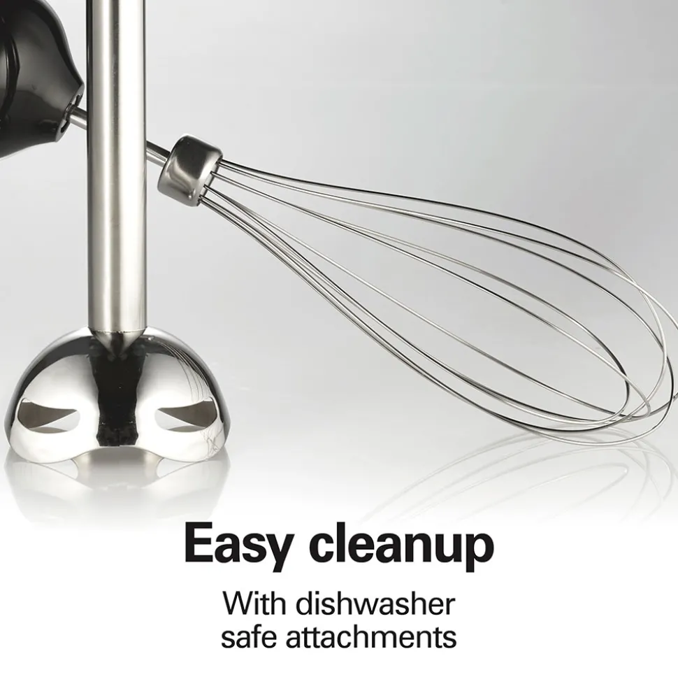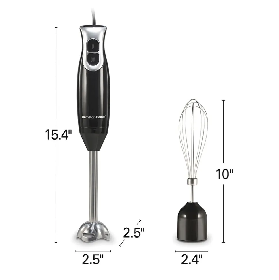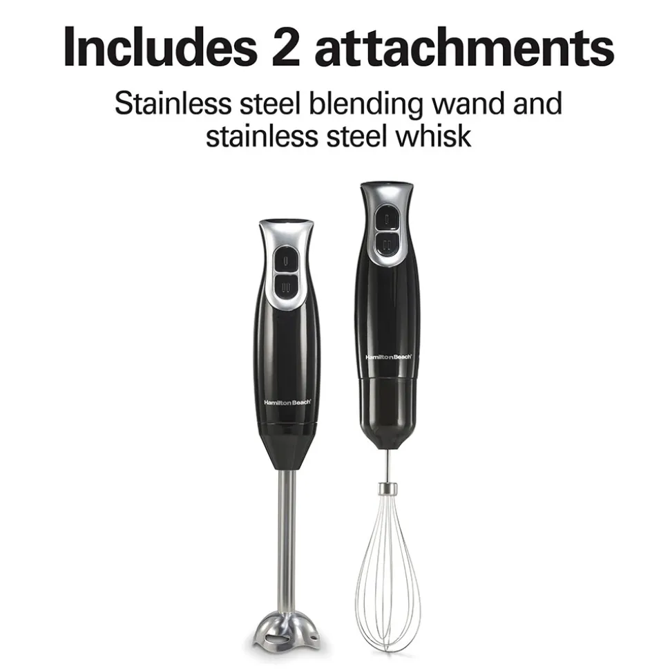 - Includes 2 attachments: and 8″ stainless steel blending wand and a stainless steel whisk