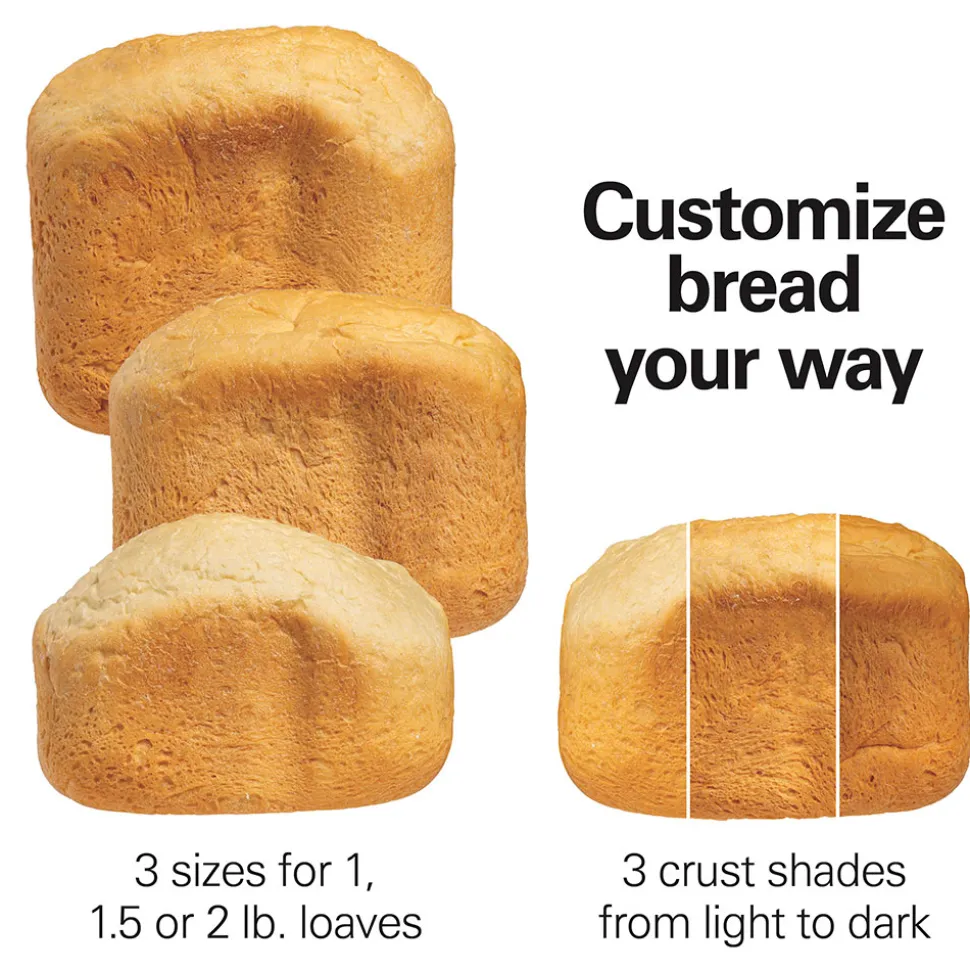 - Customize bread your way with 3 loaf sizes and 3 crust settings