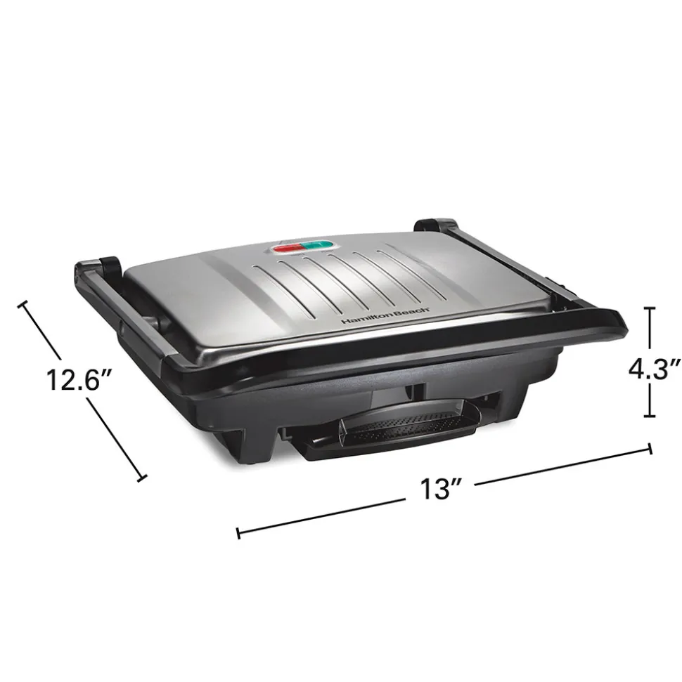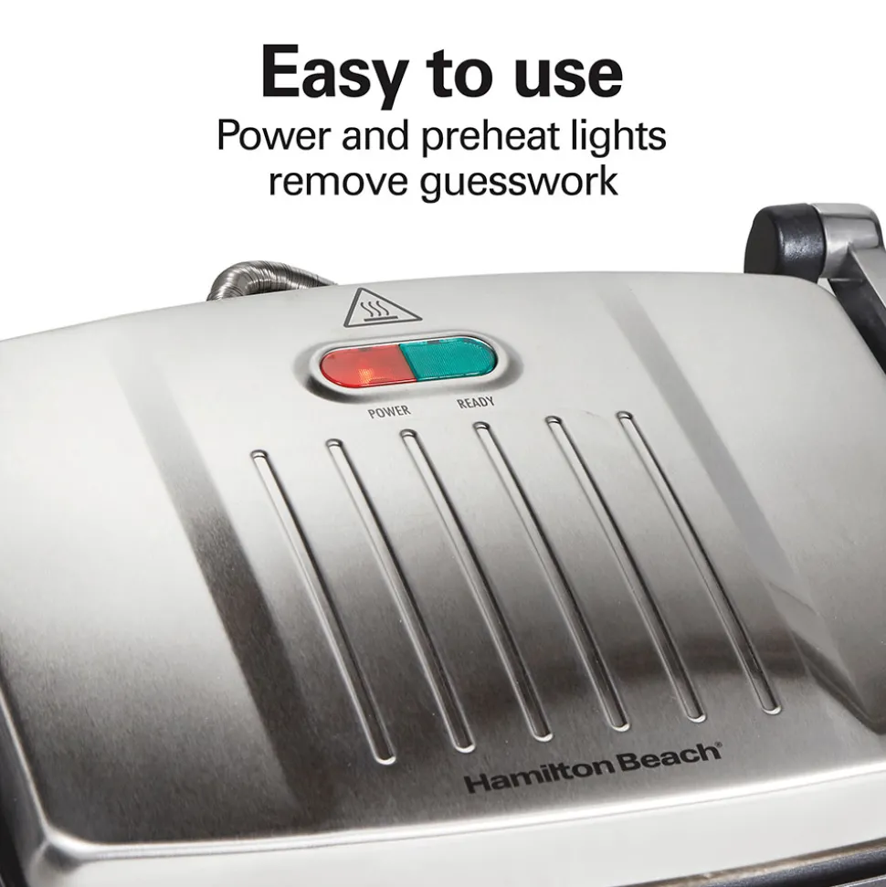With the versatile Hamilton Beach® 3-in-1 Indoor Grill, Panini Press & Sandwich Maker, you will easily grill your favorite meats and vegetables, or make a variety of paninis and hot sandwiches, from grilled cheese and classic Reuben sandwiches to Mexican tortas. The panini press and sandwich maker is perfect for grilling steaks, burgers, chicken, vegetables and fruits to perfection. Keep this multifunctional appliance on your countertop to use everyday for keto or paleo diets. The cafe-style, floating hinged lid evenly presses food of various thicknesses. With a total of 95 square inches of nonstick cooking surface on top and bottom grill plates, most meals will cook in 10 minutes or less because both sides cook at the same time.