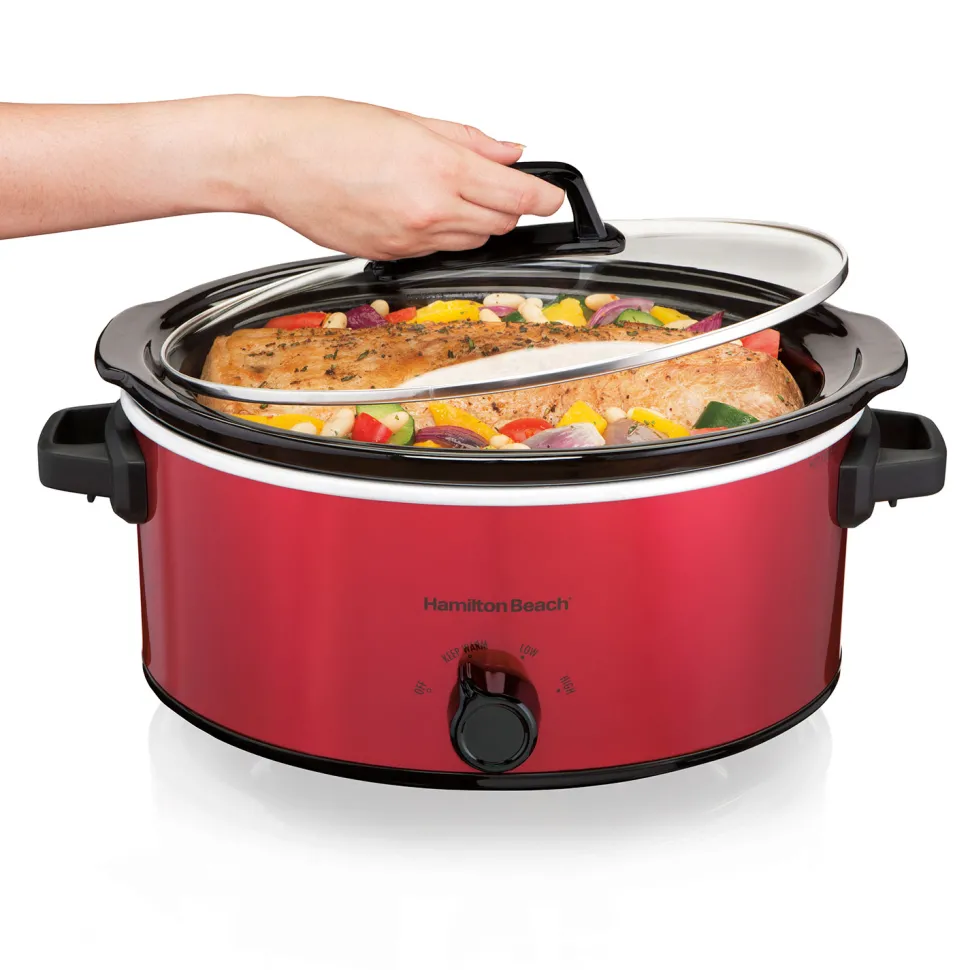 Meals practically make themselves with the Hamilton Beach 6 Quart Slow Cooker. Simply add your ingredients, choose between the Low or High settings and let the slow cooker do the rest. When cooking is complete, switch to Keep Warm to maintain the ideal temperature until you’re ready to eat. After dinner, the removable stoneware crock and tempered-glass lid go in the dishwasher for easy cleanup.