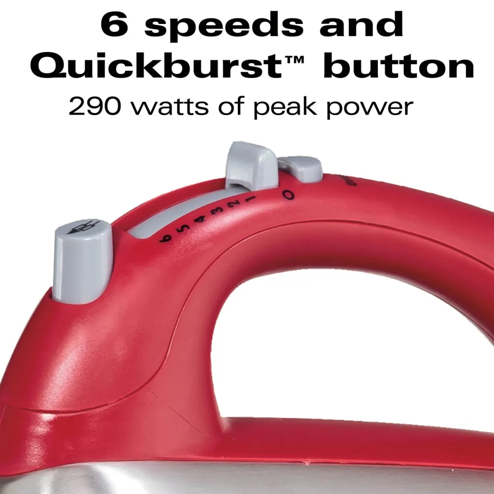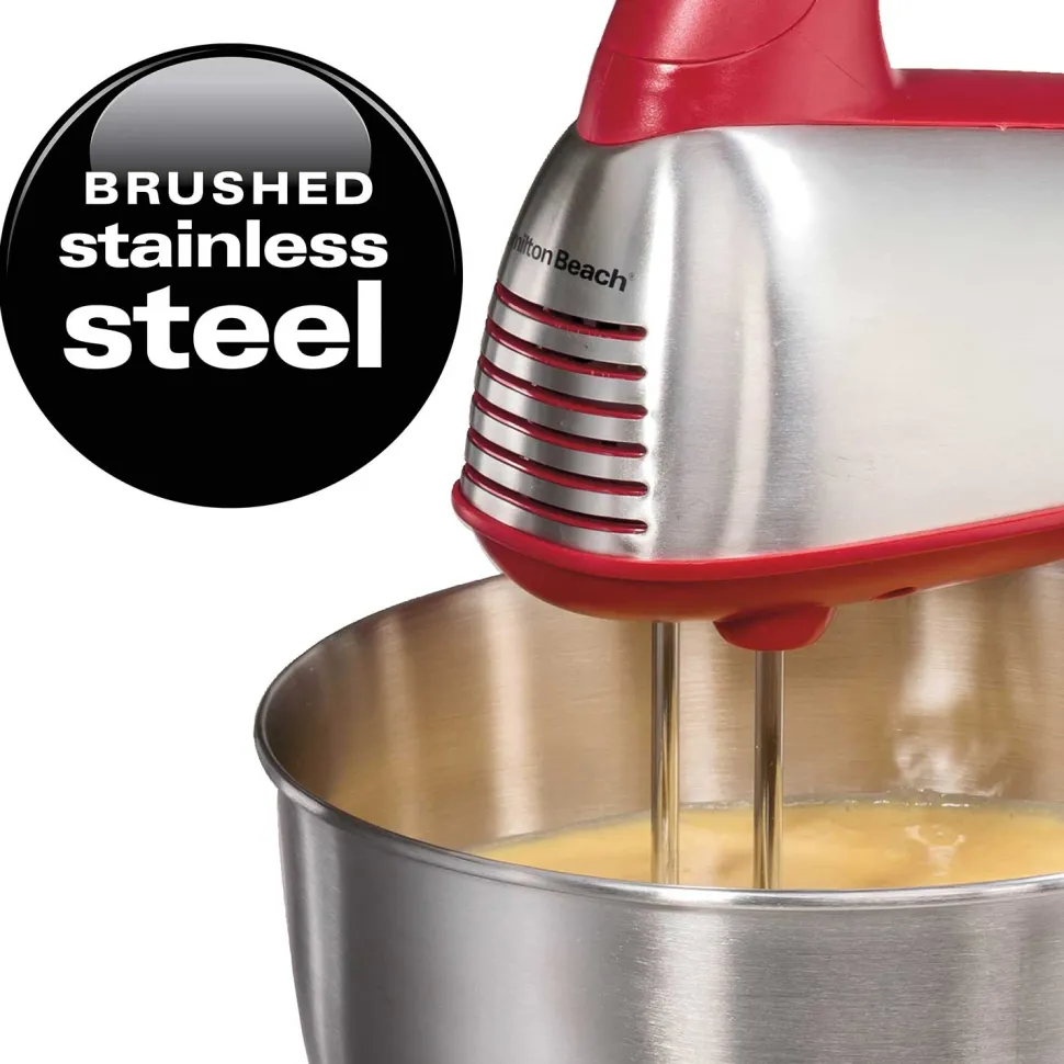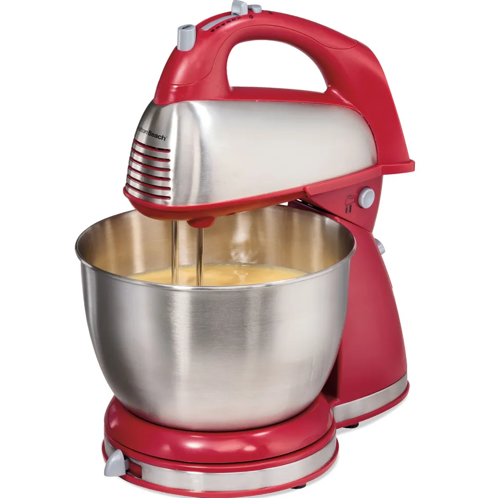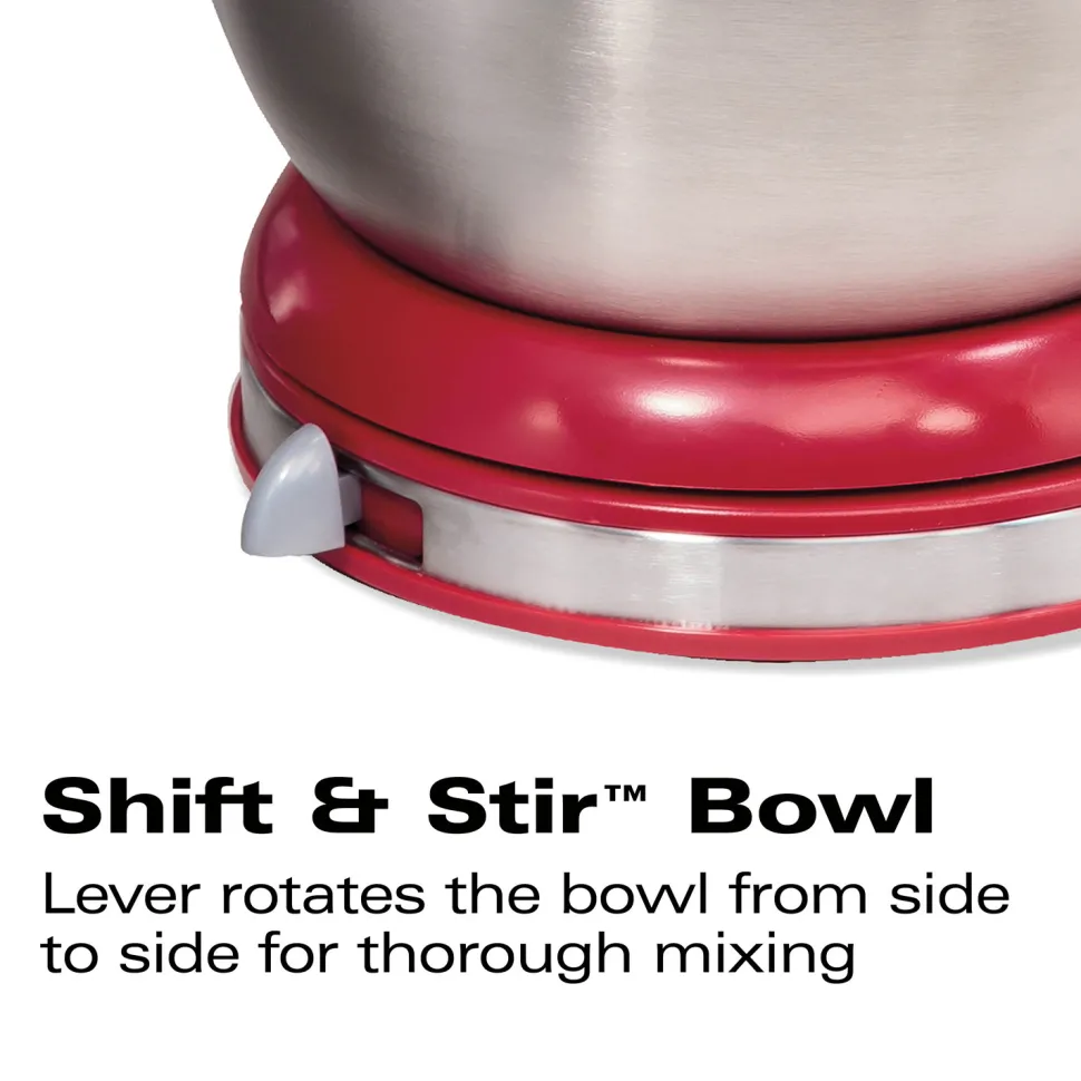 The Hamilton Beach Classic Stand Mixer lets you determine the best tool for the job. Mixing a batch of sticky cookie dough? Let the stand mixer do the work. Whipping up a quick dressing? Unlock the hand mixer from the base for the fast results you want. A variety of attachments, including classic beaters, whisk, and dough hooks, add to its versatility. Six speeds and QuickBurst™ let you tailor your mixing for anything from perfectly fluffy frosting to bread or pasta dough. 4 quart stainless steel bowl is big enough to mix your favorite recipes while still fitting easily into your refrigerator. Bowl Rest™ stabilizer and Shift & Stir™ bowl add to comfort and ease of use so you can get cooking in no time!