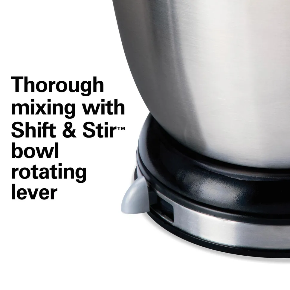 As you mix, the Hamilton Beach stand mixer has a Shift & Stir™ bowl rotating lever that lets you rotate the bowl from side to side for thorough mixing.