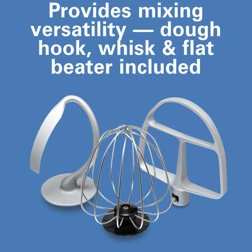 Provides Mixing Versatility — Dough Hook, Whisk & Flat Beater Included