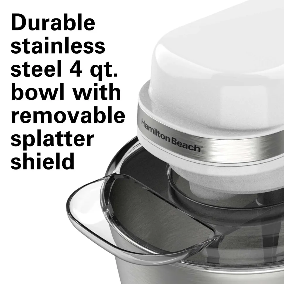 - Durable stainless steel 4 qt. bowl with removable splatter shield