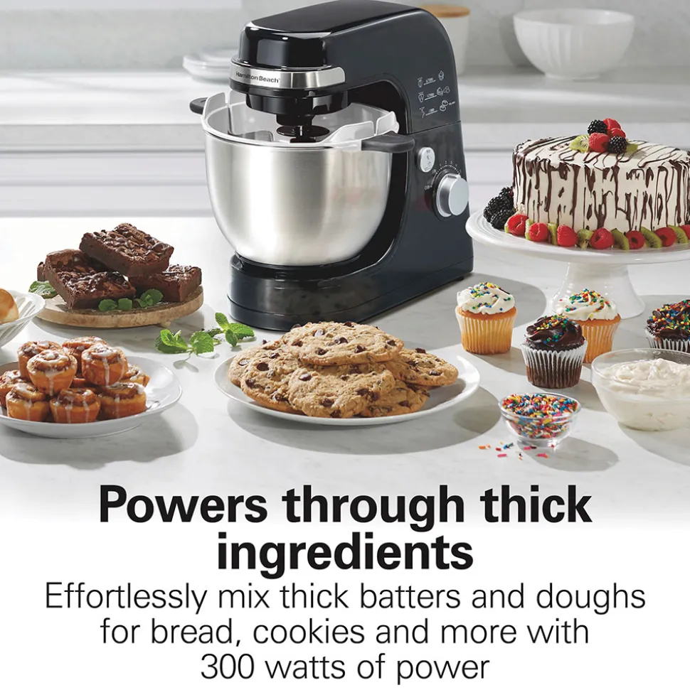 Baking just got easier. The Hamilton Beach® 7 Speed Stack & Scrape™ Stand Mixer effortlessly mixes ingredients for every baking recipe from thick batters for cake and cupcakes to dense bread doughs and more. Simply twist the patent-pending Bowl Scraper during mixing to scrape the sides of the bowl. The Bowl Scraper improves mixing and saves time. There’s no need to stop the mixer to use a spatula. The mixer has the same orbital mixing action as the higher-priced brands for complete bowl coverage, whether you’re slowly folding in ingredients or whipping them at top speed.