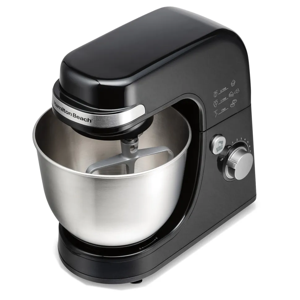 The Hamilton Beach® Stand Mixer easily mixes everything from cookie and bread dough to cake batter and whipped cream. It has the same planetary mixing action as the higher-priced brands and provides complete bowl coverage for thorough, hands-free mixing. It’s built with a 300 watt motor that powers through the thickest dough and is able to maintain constant speed no matter what you’re mixing. The Hamilton Beach Stand Mixer comes with 3 attachments for mixing versatility including a dough hook, whisk & flat beater and its 7 mixing speeds take you from slowly folding ingredients on the first speed all the way up to whipping at top speed. The durable stainless steel 4 qt. bowl withstands year after year of mixing and comes with a removable splatter shield. Whenever you need to add more ingredients to the bowl or change attachments, the tilt-up head is easily moved up and out of your way.