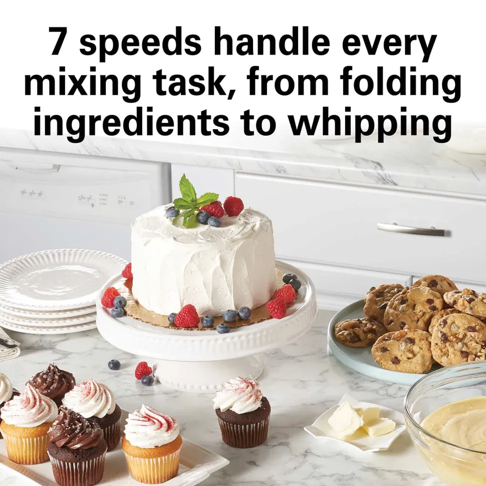- 7 speeds handle every mixing task, from folding ingredients to whipping