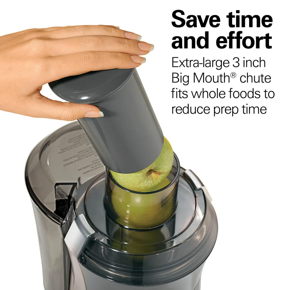 Whether it’s an invigorating orange or nutrient-rich green, enjoying a fresh glass of homemade juice has never been easier. With its large chute and powerful motor, the Hamilton Beach Big Mouth Juice Extractor makes quick work of fruits and vegetables with little prep time required. Cold Press Vs. Traditional Juicing Juice with confidence knowing that lab tests prove virtually no heat is transferred into the juice by the Big Mouth juicer. And third-party analysis shows no clear nutritional advantage for masticated, cold-pressed juice.