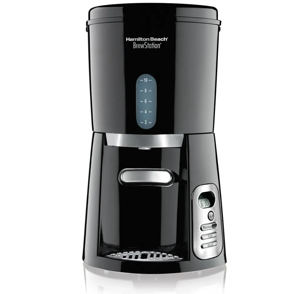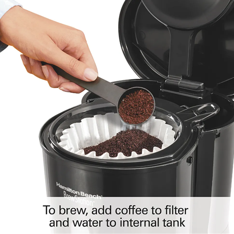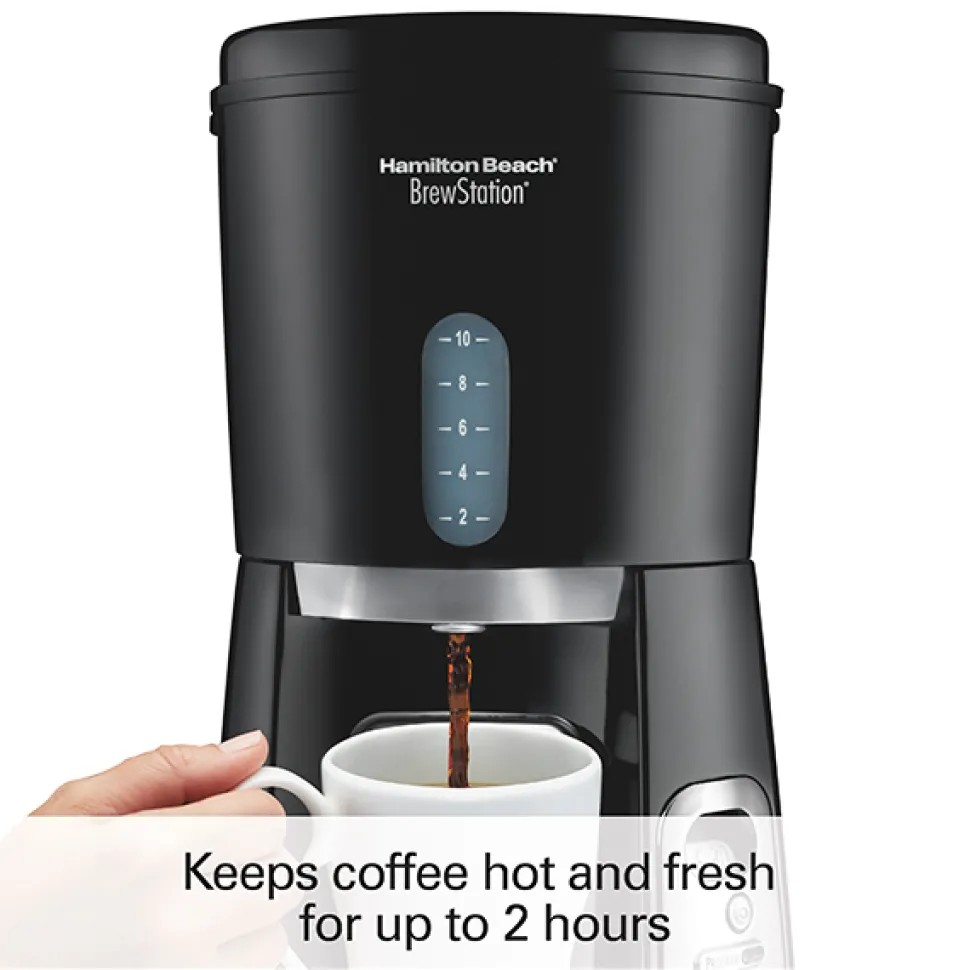 No matter how much you try, it’s impossible to get freshly brewed flavor from coffee that’s been sitting on a hot plate too long. That’s why we created the Hamilton Beach BrewStation®, the only coffeemaker that keeps coffee tasting fresh for up to two hours. This best-selling coffee maker works just like a traditional, automatic drip brewer, but with a notable difference: it brews into an internal tank instead of a carafe. This innovation in brewing technology is what will make your last cup taste just as fresh as the first. An internal heater keeps coffee at the perfect temperature for up to two hours, so you can refuel with a fresh, hot cup throughout your morning.