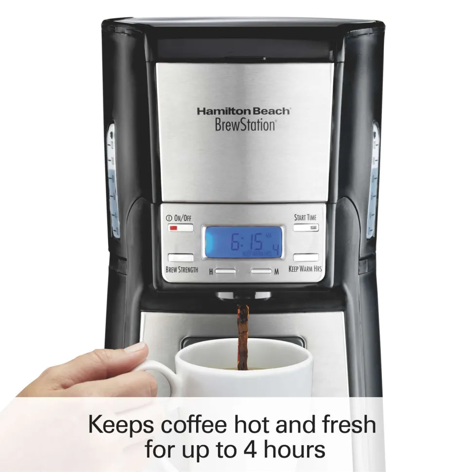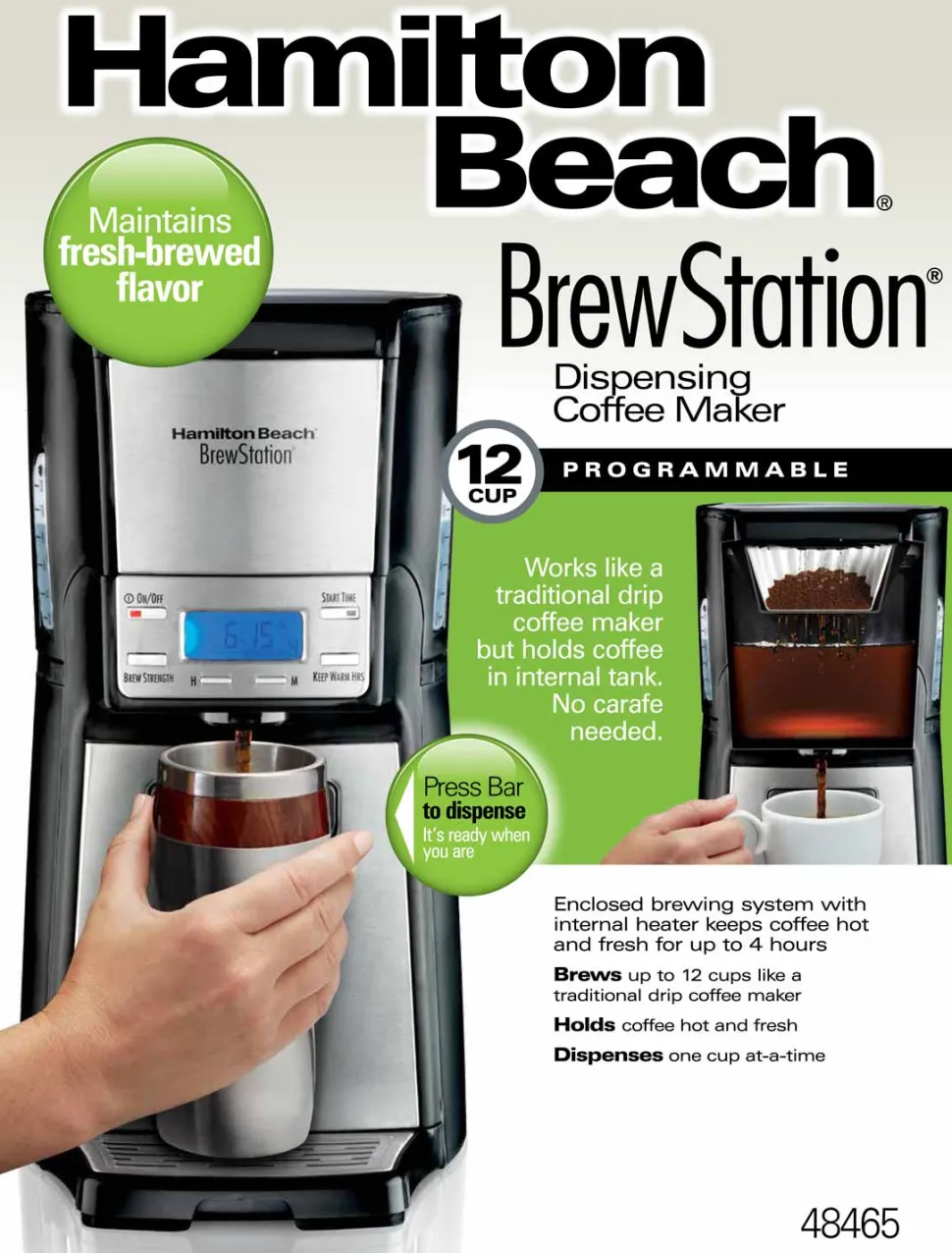 This BrewStation® gives you ultimate brewing control. It’s programmable 24-hours in advance for morning coffee, has four options – bold, regular, 1-4 cups and iced coffee. And the keep-hot function lets you set it for up to 4 hours.