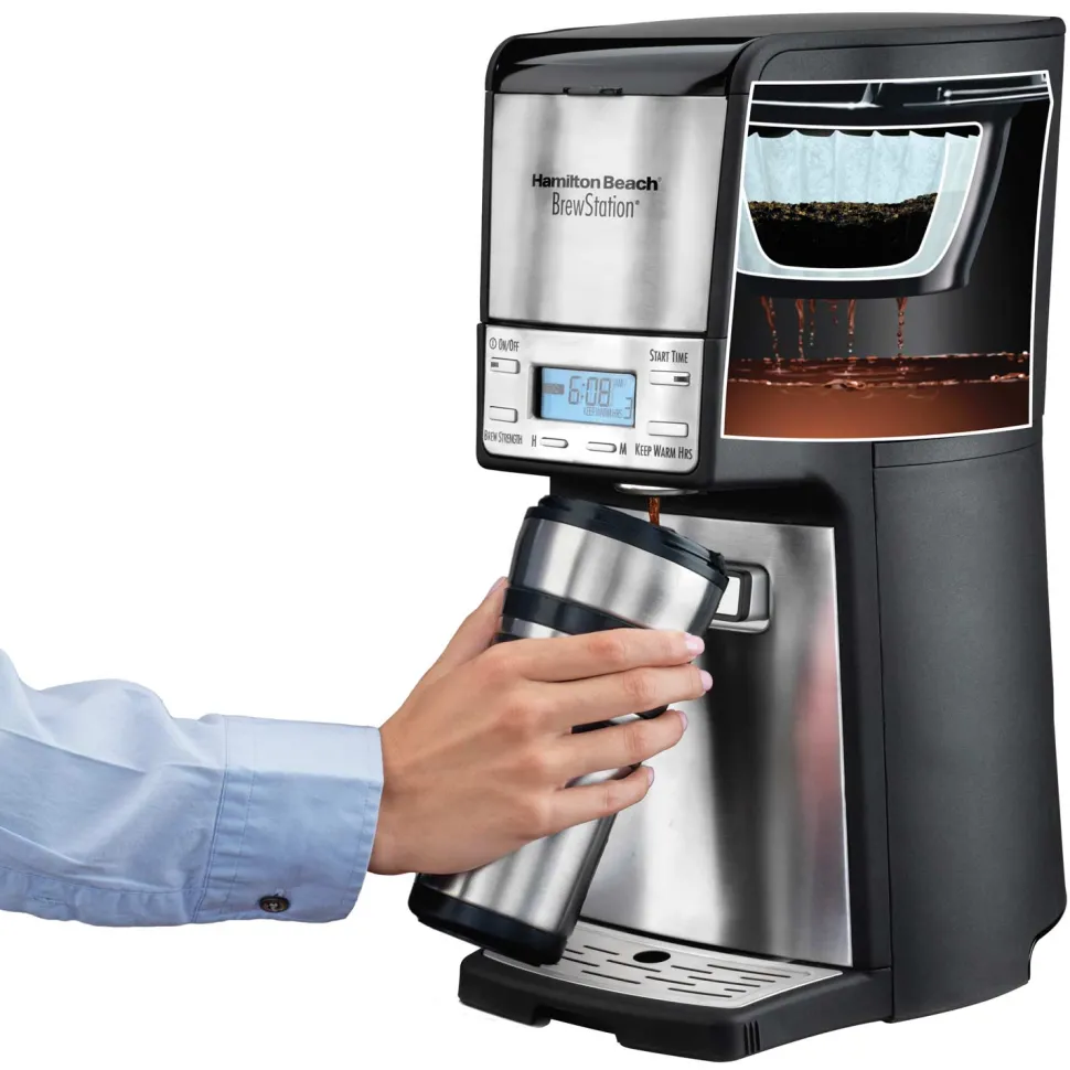 No matter how much you try, it’s impossible to get freshly brewed flavor from coffee that’s been sitting on a hot plate too long. That’s why we created the Hamilton Beach BrewStation®, the only coffeemaker that keeps coffee tasting fresh for up to four hours. This best-selling coffee maker works just like a traditional, automatic drip brewer, but with a notable difference: it brews into an internal tank instead of a carafe. This innovation in brewing technology is what will make your last cup taste just as fresh as the first. An internal heater keeps coffee at the perfect temperature for up to four hours, so you can refuel with a fresh, hot cup throughout your morning.