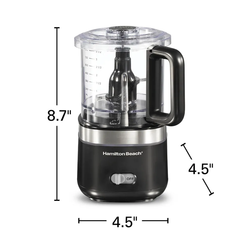 The Hamilton Beach® Cordless Food Chopper gives you cordless chopping freedom that you can enjoy anywhere anytime, from standing at your kitchen island to sitting at your breakfast table. There’s no need to be near an outlet and you’ll never have a cord in your way. It’s easy to use. Just add ingredients to the bowl, put the lid on top and press it down to chop. The large 4 cup bowl is sealed to prevent leaks and it’s the perfect size for all your chopping and food processing needs.