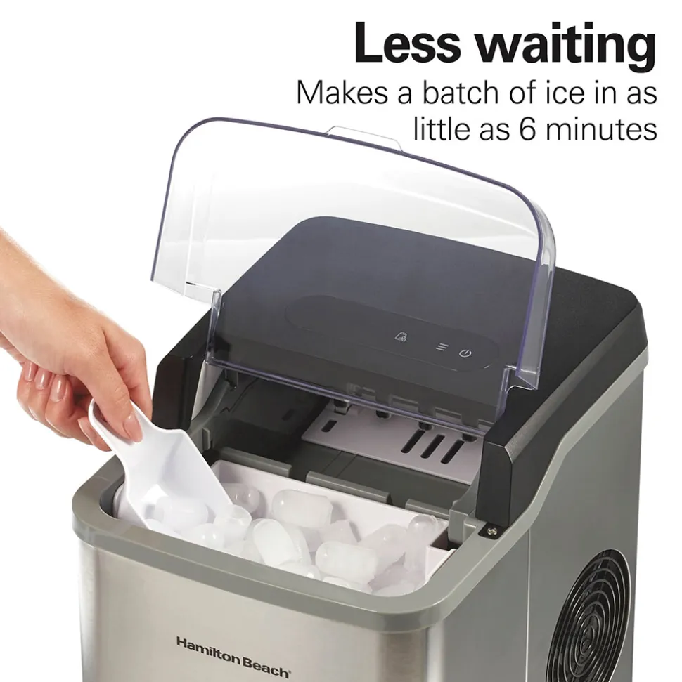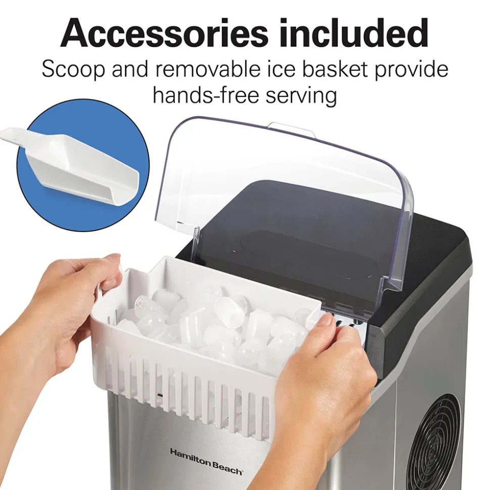 Includes intuitive controls for simple one-touch operation, convenient clean cycle, scoop and removable ice basket. Built for long-lasting performance and backed by a 1 year limited warranty from Hamilton Beach.