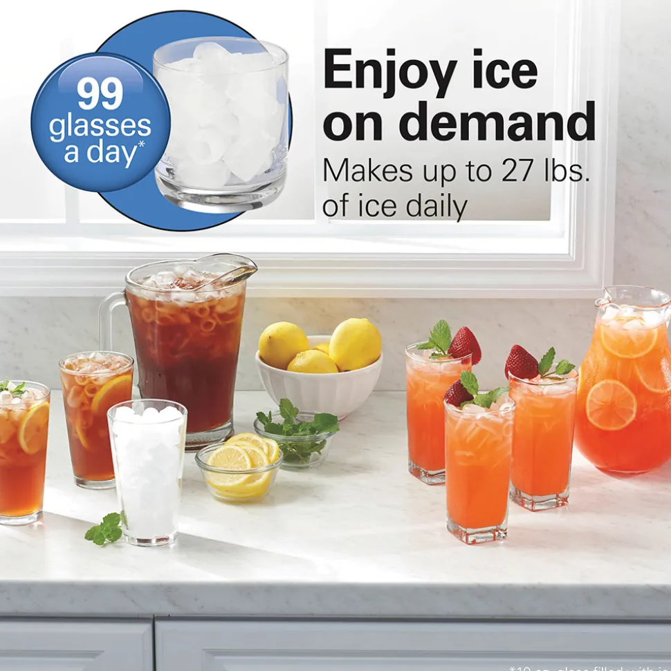 - Enjoy ice on demand — makes up to 27 lbs. of ice daily