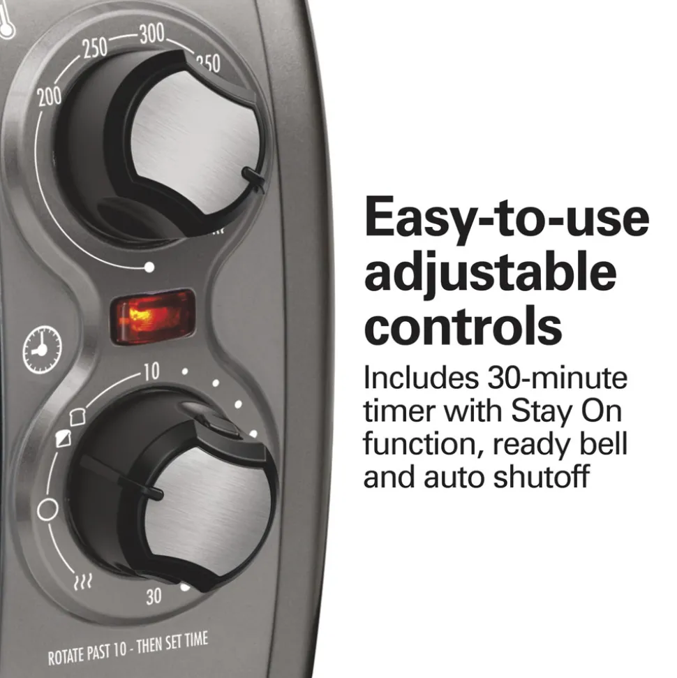 - Easy-to-use adjustable controls — includes 30-minute timer with Stay On function, ready bell and auto shutoff