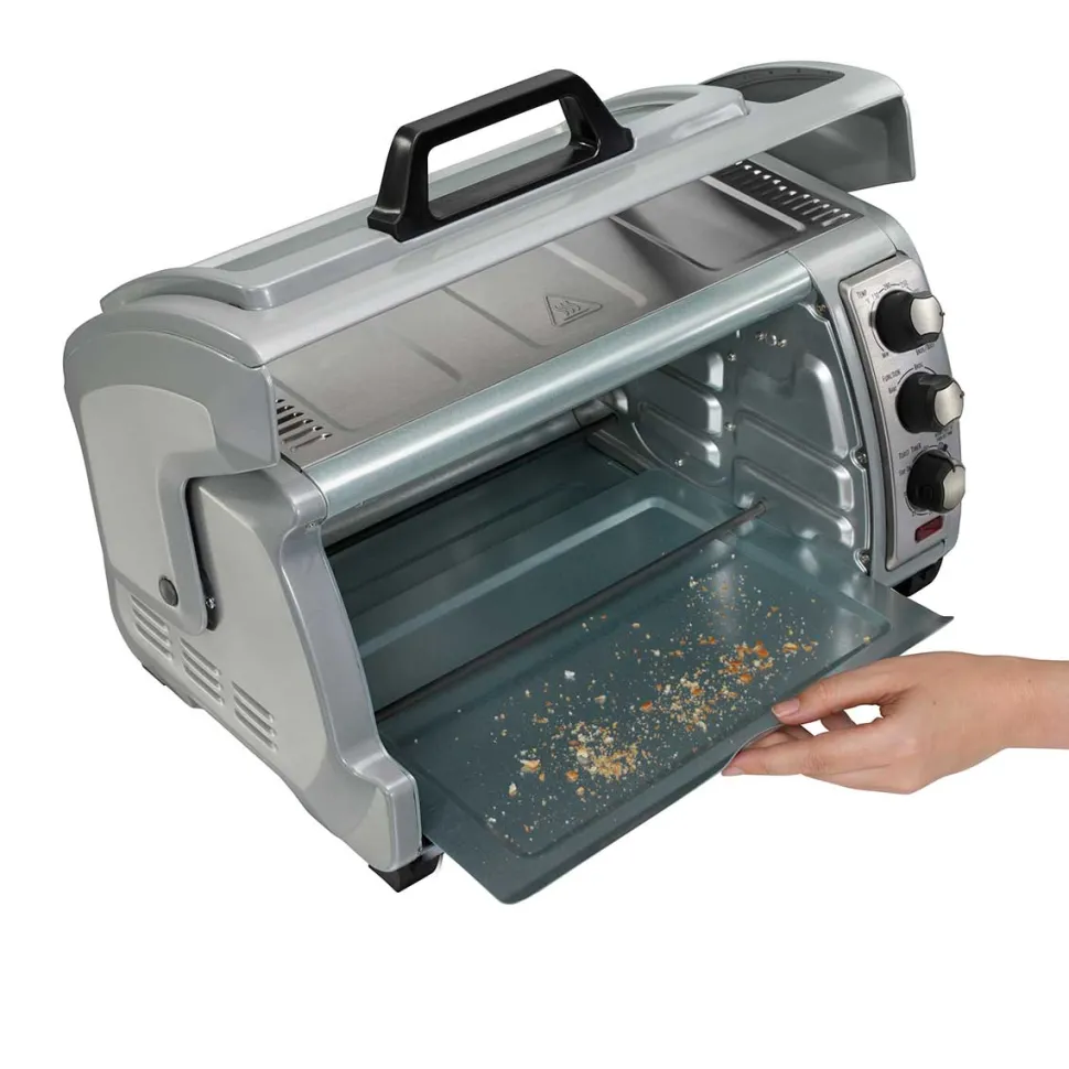 Easily access food in the toaster oven broiler and on your countertop with the Easy Reach roll-top door.