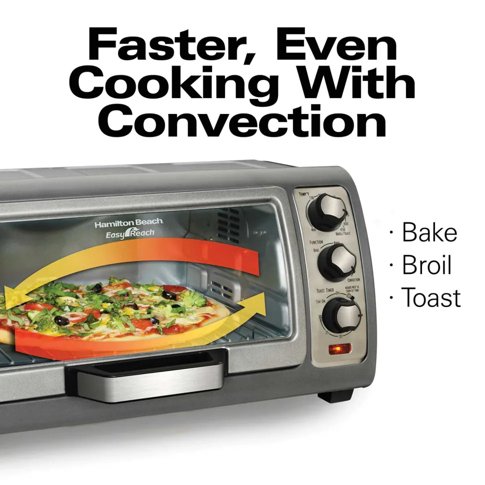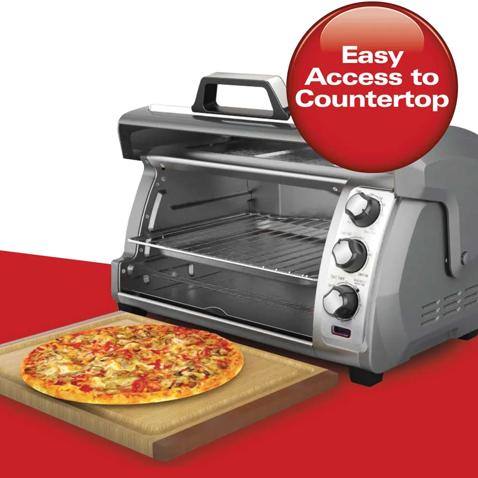 - Fits a 9” x 11” bake pan, 12” pizza, or 6 slices of toast