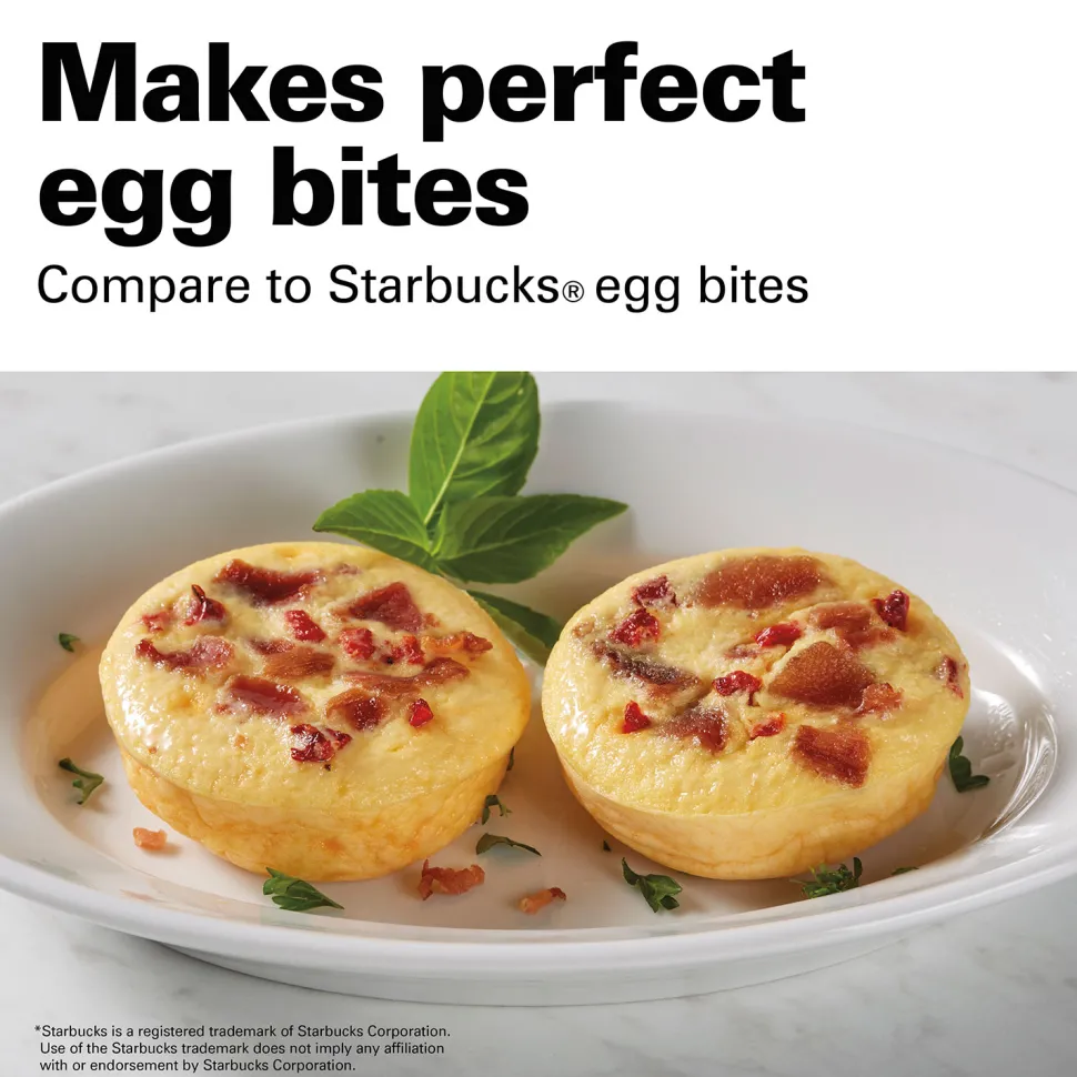 - Makes perfect egg bites – Compare to Starbucks®* Skip the expense of egg bites from the coffee shop or grocery store and make your own in the comfort of your home. Your family will love the taste and you can use your own fresh ingredients.
