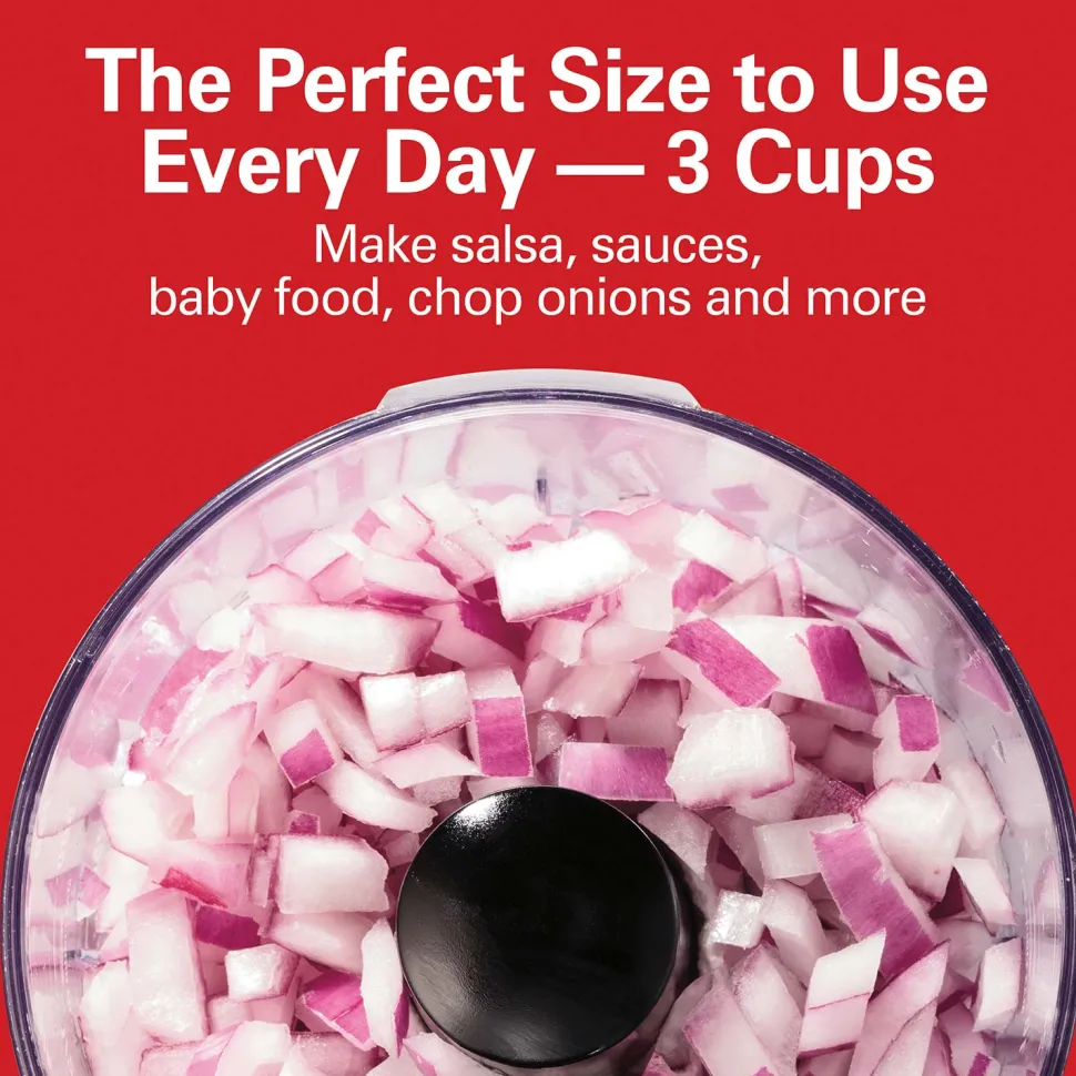 The versatile food chopper holds 3 cups, the perfect size to use in the kitchen every day for prepping foods. Chop onions, make homemade salsa, emulsify your favorite sauces, puree baby food, and more.
