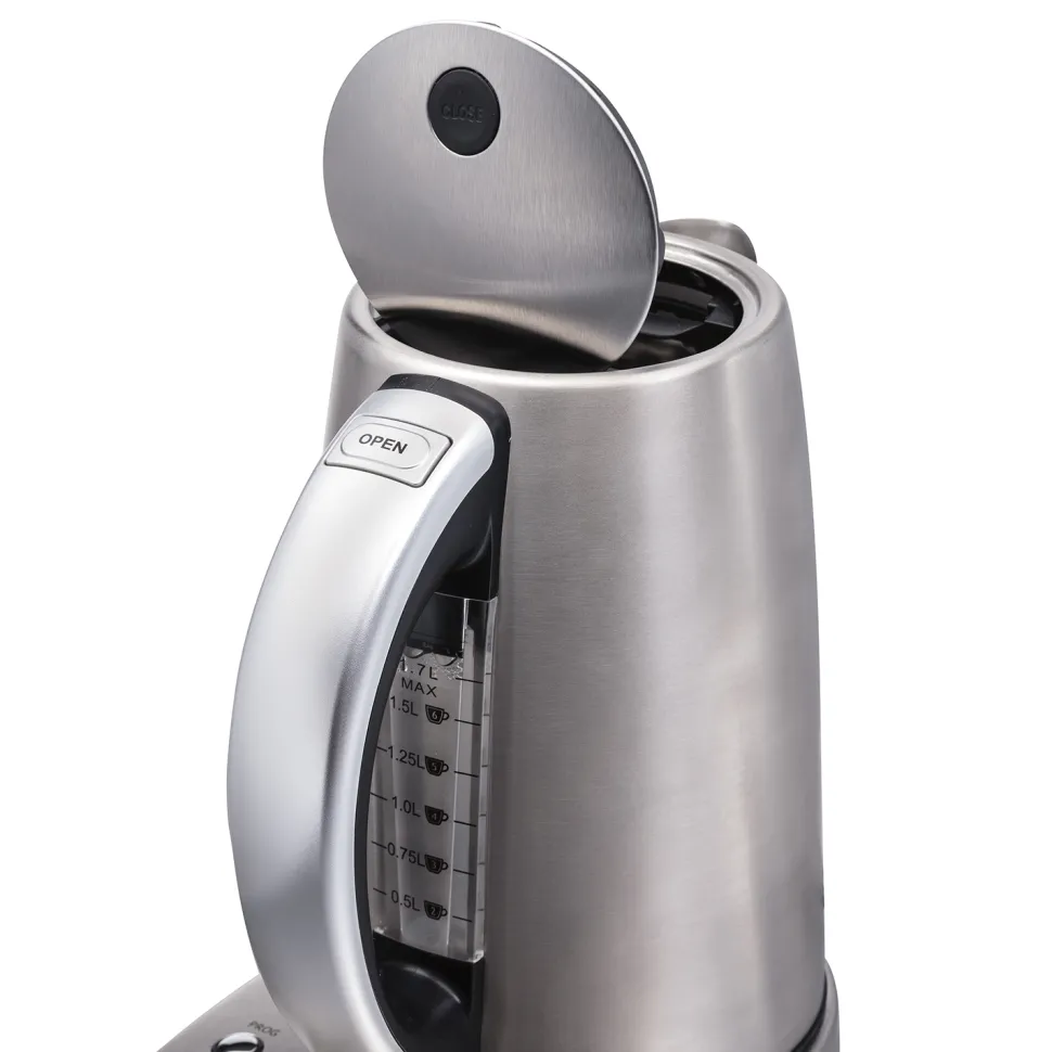 Stainless steel construction will make this 1.7 liter kettle a countertop mainstay. Interior LED lights in the illuminated water window glow a soft blue, letting you know that hot water is on the way.