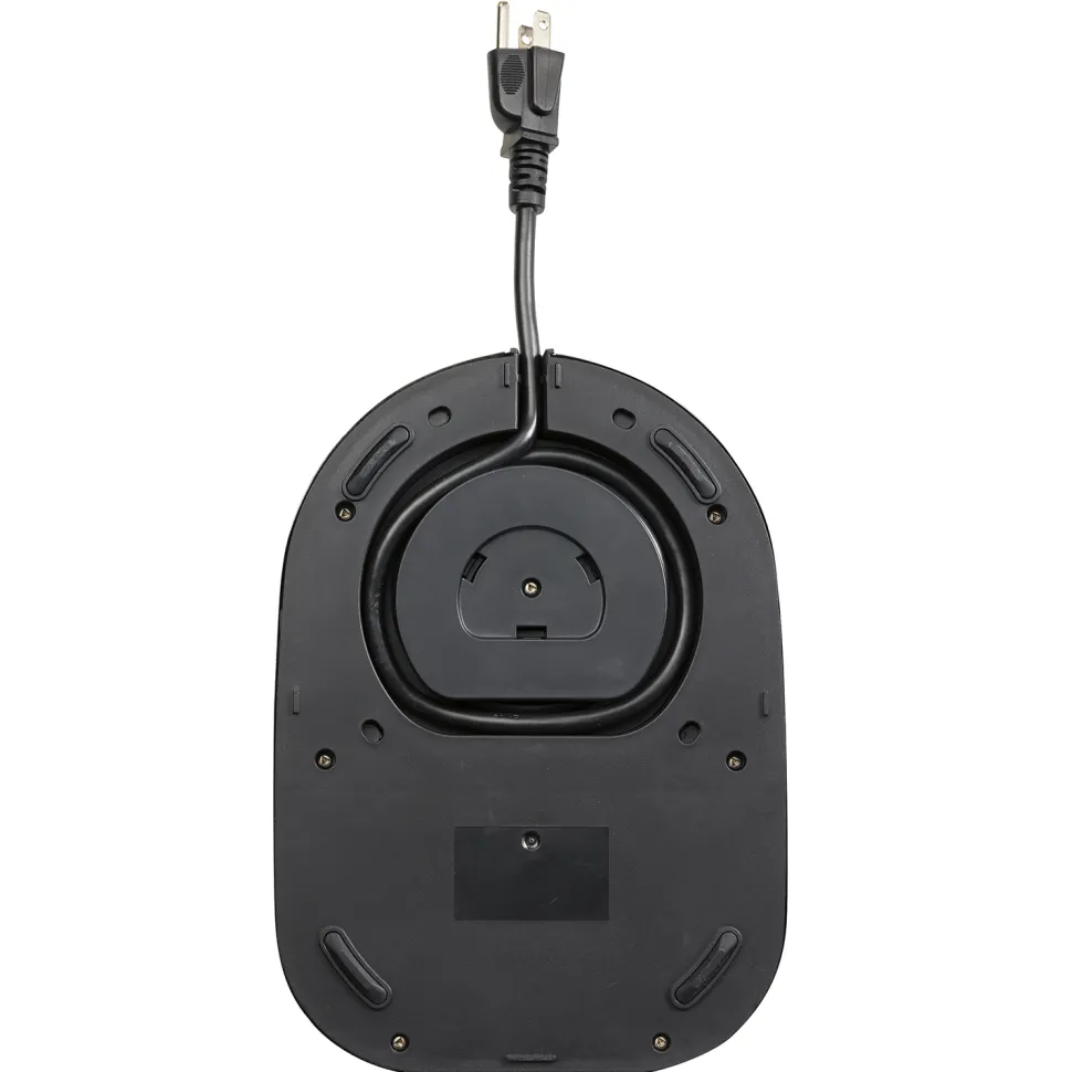 A convenient cord wrap below the base keeps the power cord neatly tucked away.