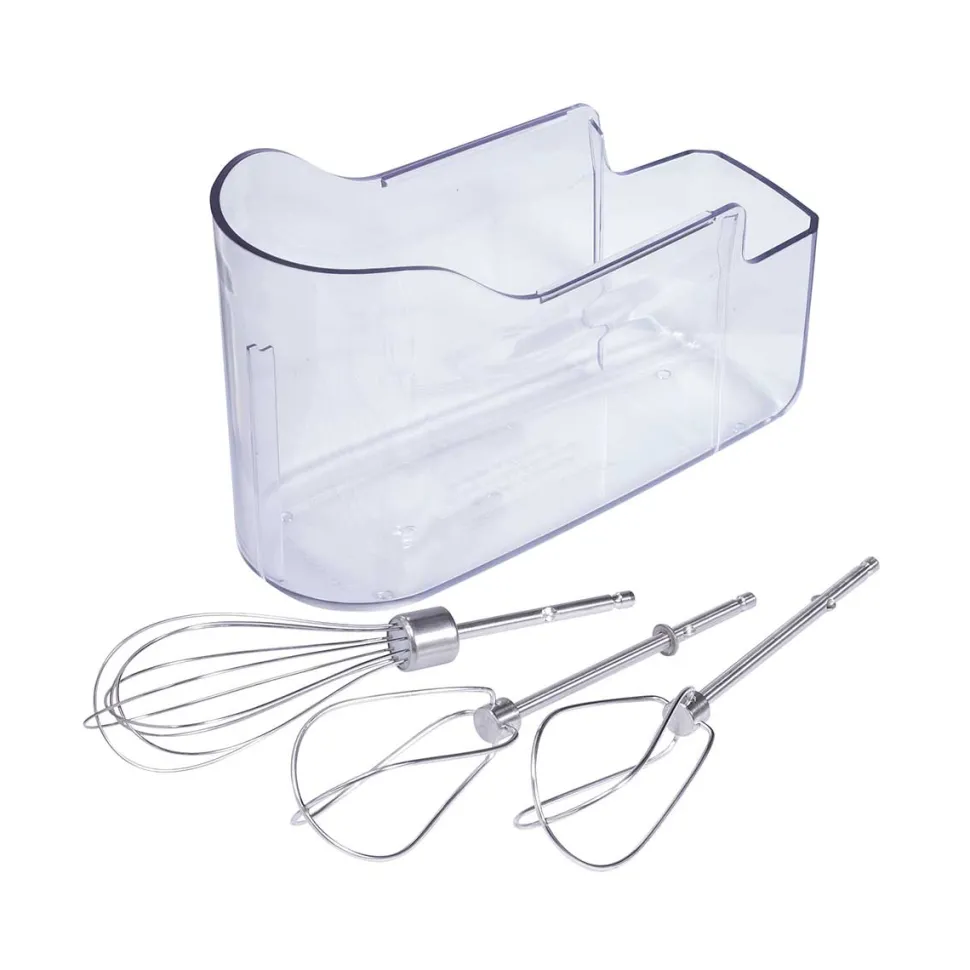 Keep everything in one place. Stainless steel beaters and whisk are dishwasher-safe.