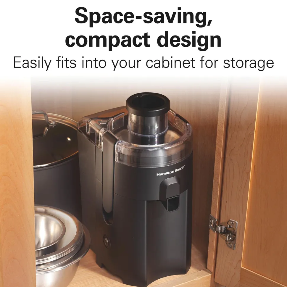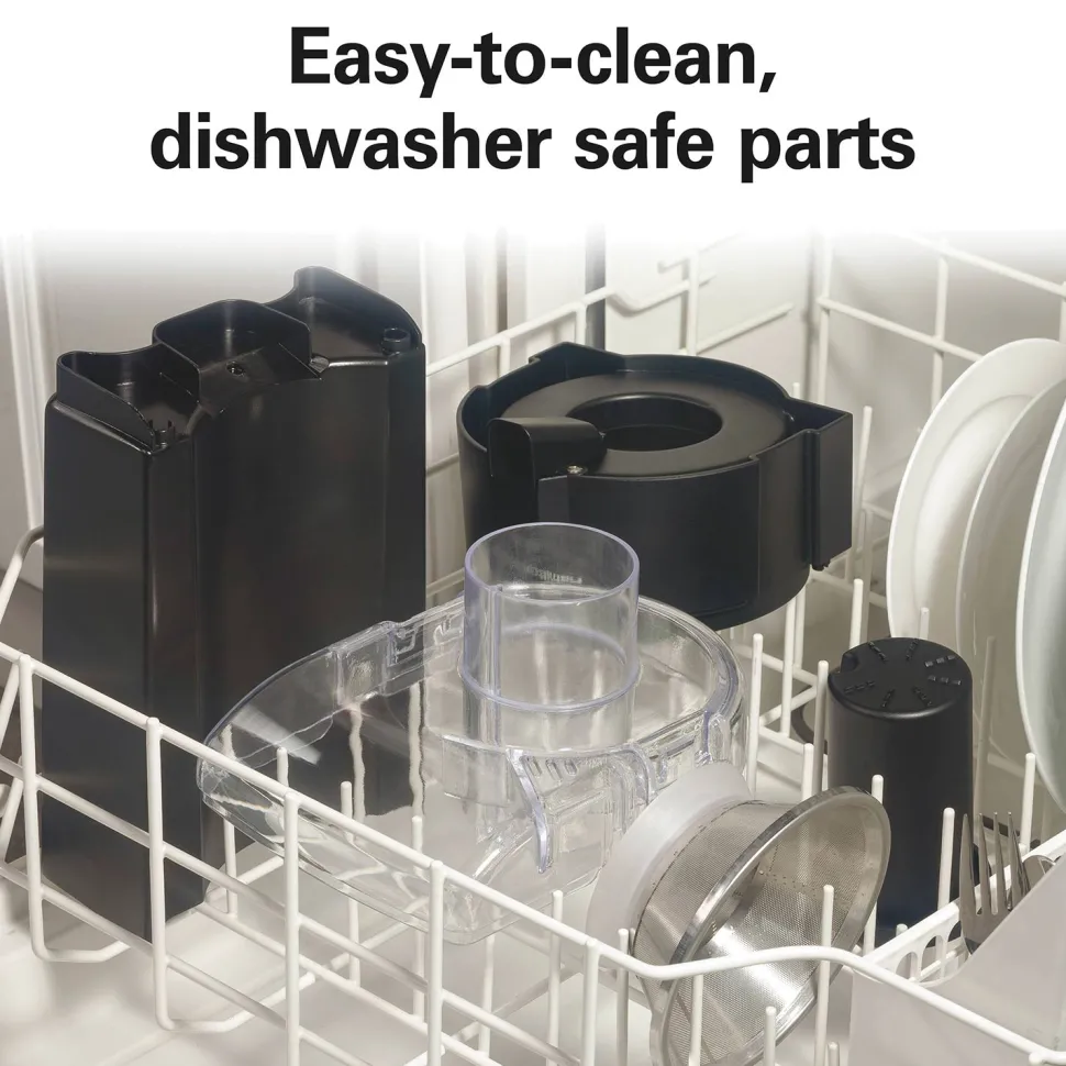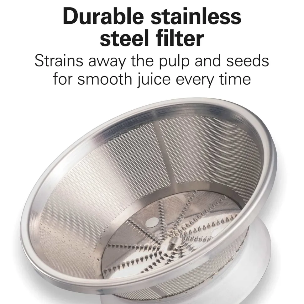 As you juice, the durable stainless steel filter strains away the pulp and seeds for smooth results. When you’re finished juicing, all the removable parts go in the dishwasher for easy cleanup. BPA-free in food zones. Backed with a 3 year limited warranty by Hamilton Beach, the #1 brand in juice extractors.*