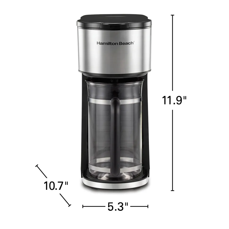 The slim, 5″ wide design of this compact coffee maker takes up minimal counter space and looks great in every kitchen.