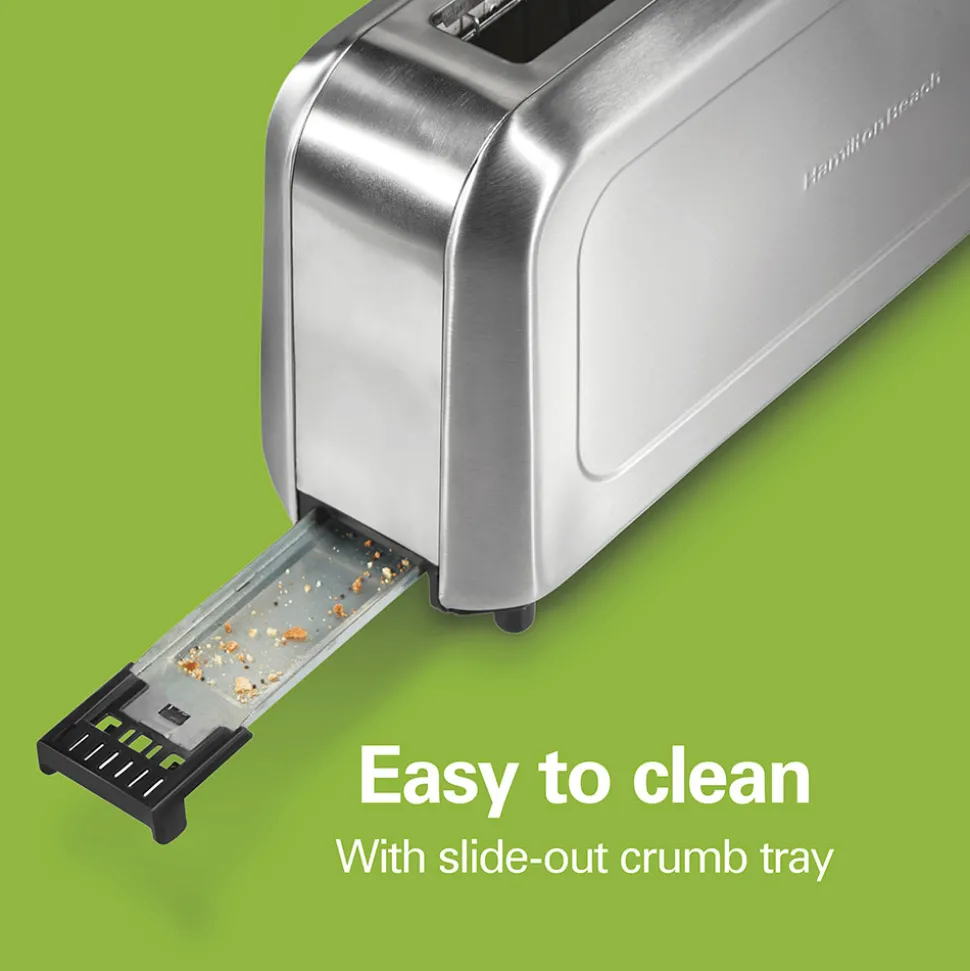 Extra long, extra wide slot fits 1 or 2 slices of bread