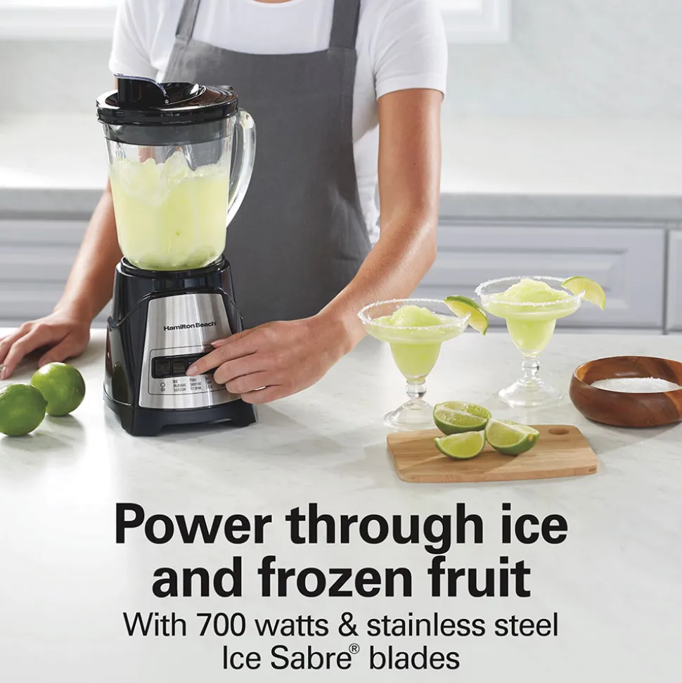 With 700 watts of peak blending power and stainless steel Ice Sabre® blades, this smoothie blender gives you all the power you need to make smoothies, protein shakes, frozen drinks and more.