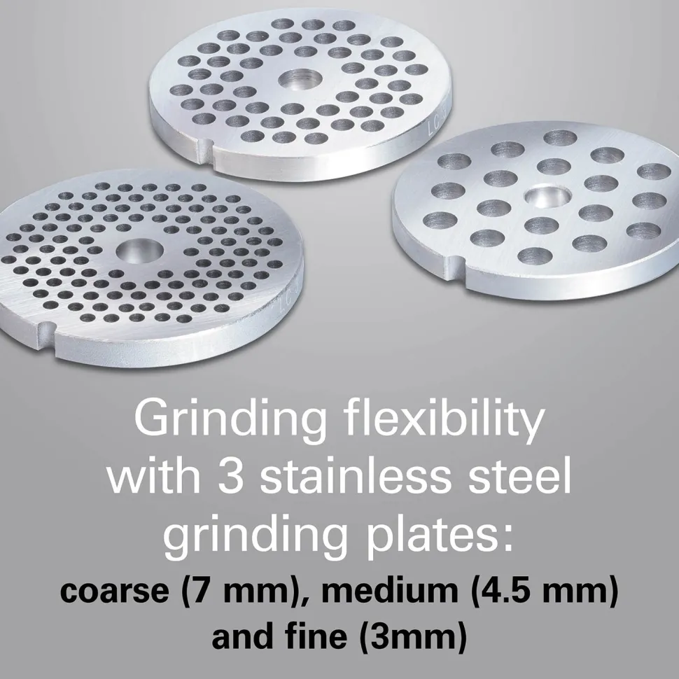 If you prefer to grind food at its peak freshness at home instead of purchasing it at the store, it’s important to own a professional-quality meat and food grinder. The Hamilton Beach® Professional All-Metal Food Grinder Attachment Set easily locks onto the Hamilton Beach® Professional All-Metal Stand Mixer, turning it into a top-performing meat and food grinder, sausage stuffer, and kibbe-making machine. Not only does it help you control the freshness of your ingredients, it also helps accomplished cooks like you expertly control how all your recipes turn out. Use the fine and medium grinding plates for meats and breads and the coarse plate for assorted cheeses, meats and vegetables. The sausage stuffer tube lets you create sausage like a professional, and the kibbe attachment helps you make fresh, hand-crafted kibbe that could rival any Lebanese restaurant. Includes stainless steel food tray, 3 grinding plates (3mm/4.5mm/7mm), sausage stuffing tube, kibbe accessory, and food stomper/pusher. Backed by a limited 5 year warranty.