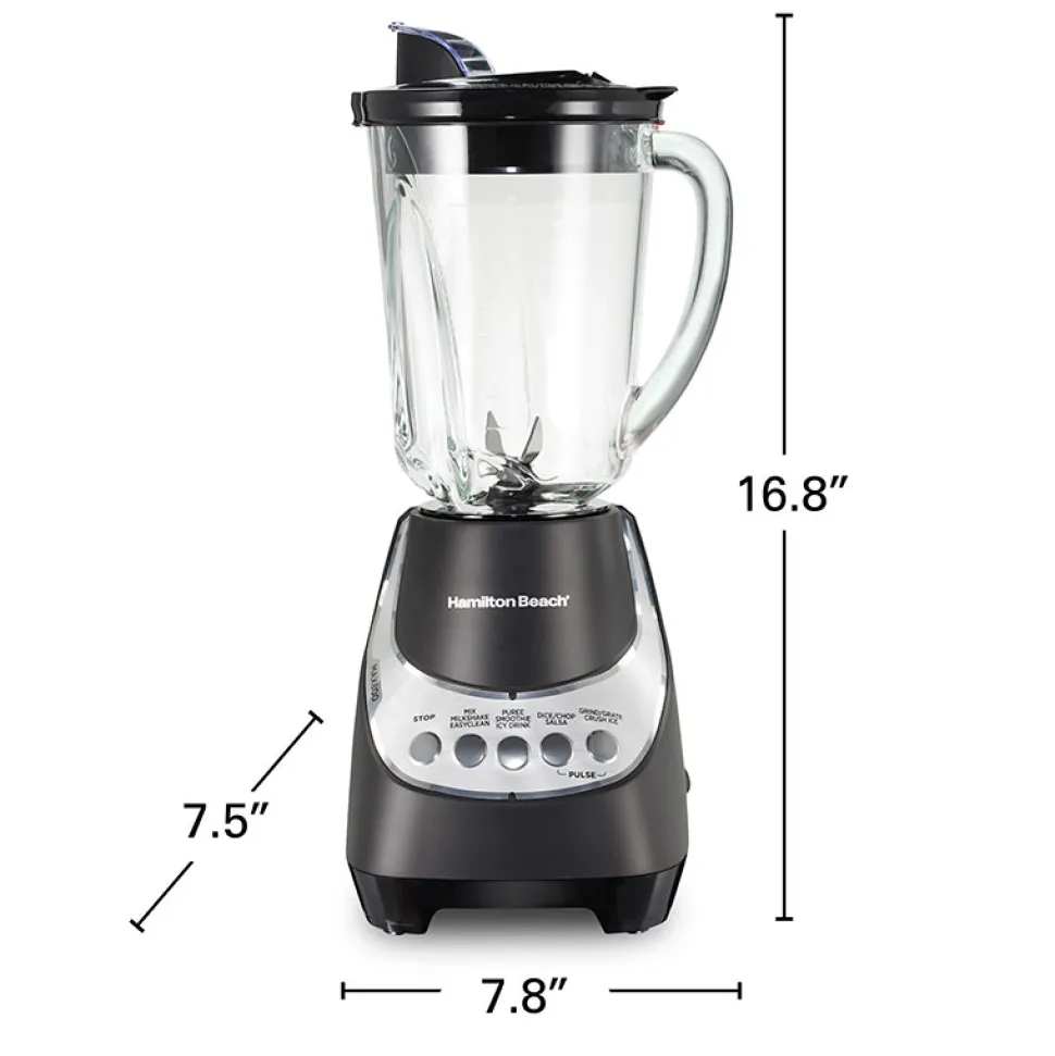 The smooth, easy-to-clean 12 function touchpad provides maximum blending versatility, and there’s no guesswork since the base clearly indicates which button to use for every job. Built with a patented quieter blending design, the Hamilton Beach Wave~Action Quiet Blender minimizes noise as you blend. Serving multiple people is easy because the shatter-resistant glass jar holds 48 ounces and the mess-free pour spout messy eliminates drips. Built for long-lasting performance and backed by Hamilton Beach with a 3 year limited warranty.
