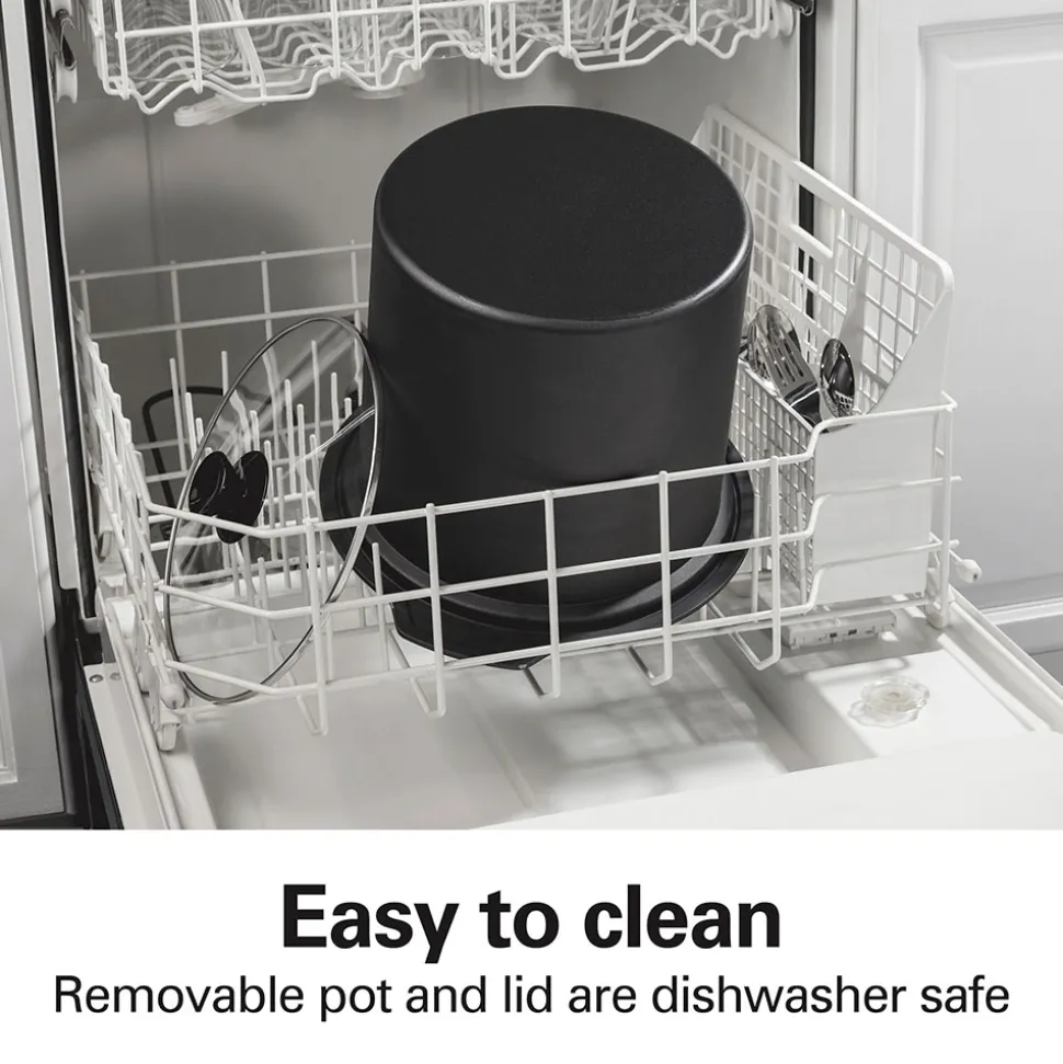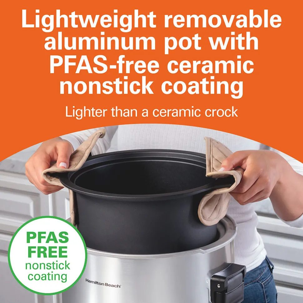 The Hamilton Beach Sear & Cook Stockpot Slow Cooker has 15 heating options so you can mix and match high, low, or warm heat settings with your choice of 2, 4, 6, 8 or 10 hours of cooking time. When cooking is complete, it automatically shifts to warm to keep food at the perfect temperature until serving time. For easy cleanup, removable pot with PFAS-free ceramic nonstick coating, and glass lid are dishwasher safe.