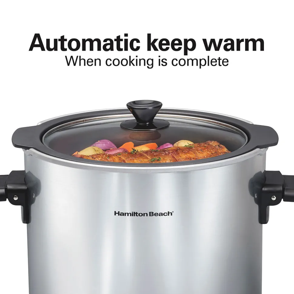 The Hamilton Beach Sear & Cook Stockpot Slow Cooker has everything you need to create homemade, delicious meals for 12 or more people. It’s specially designed to let you sear right on your stovetop to lock in flavor, and then finish your meal in the slow cooker. The removable nonstick aluminum pot can cook directly on gas, electric or ceramic stovetops and since it’s lightweight, it’s easier to lift when full.