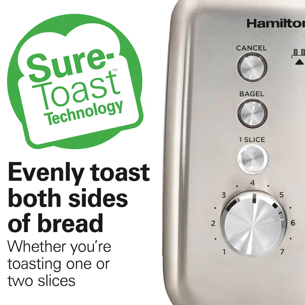 - Sure-Toast™ technology evenly toasts both sides of bread, even when toasting a single slice with the 1 Slice button