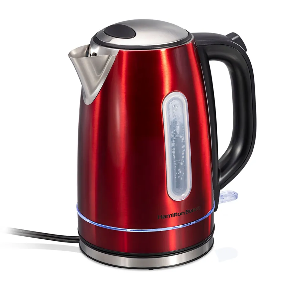 Illuminate your kitchen and brighten every morning with the Hamilton Beach® Stainless Steel Electric Kettle with LED Light Ring. The stylish and functional LED light ring illuminates when water is heating up and the kettle is on. Since the LED light ring encircles the entire kettle, it’s clearly visible from every angle. The kettle holds 1.7 liters or 7 cups of water and is made to provide years of long-lasting performance. The kettle’s interior is made of durable, BPA-free, food-grade stainless steel.