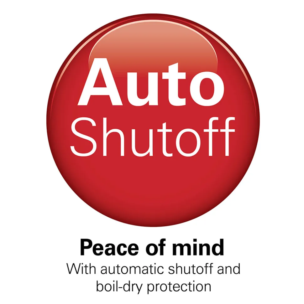 The automatic shutoff function turns the cordless electric kettle off when water comes to a boil and the boil-dry protection function keeps the kettle from scorching if the water level gets too low.
