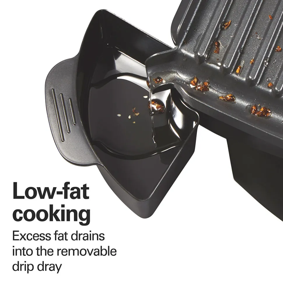Grill steaks and all your favorite foods year-round in any weather with this Hamilton Beach indoor grill. There’s no need for a bulky, time-consuming outdoor grill that needs propane, charcoal or lighter fluid to heat up.