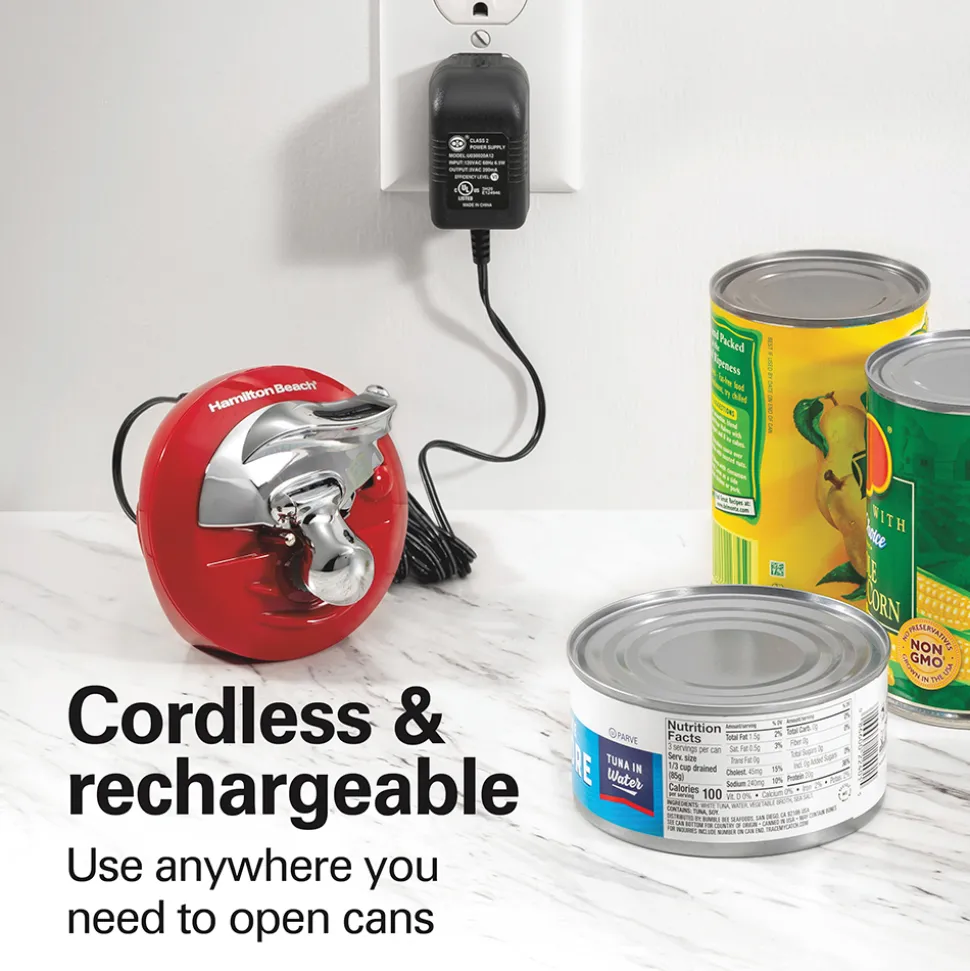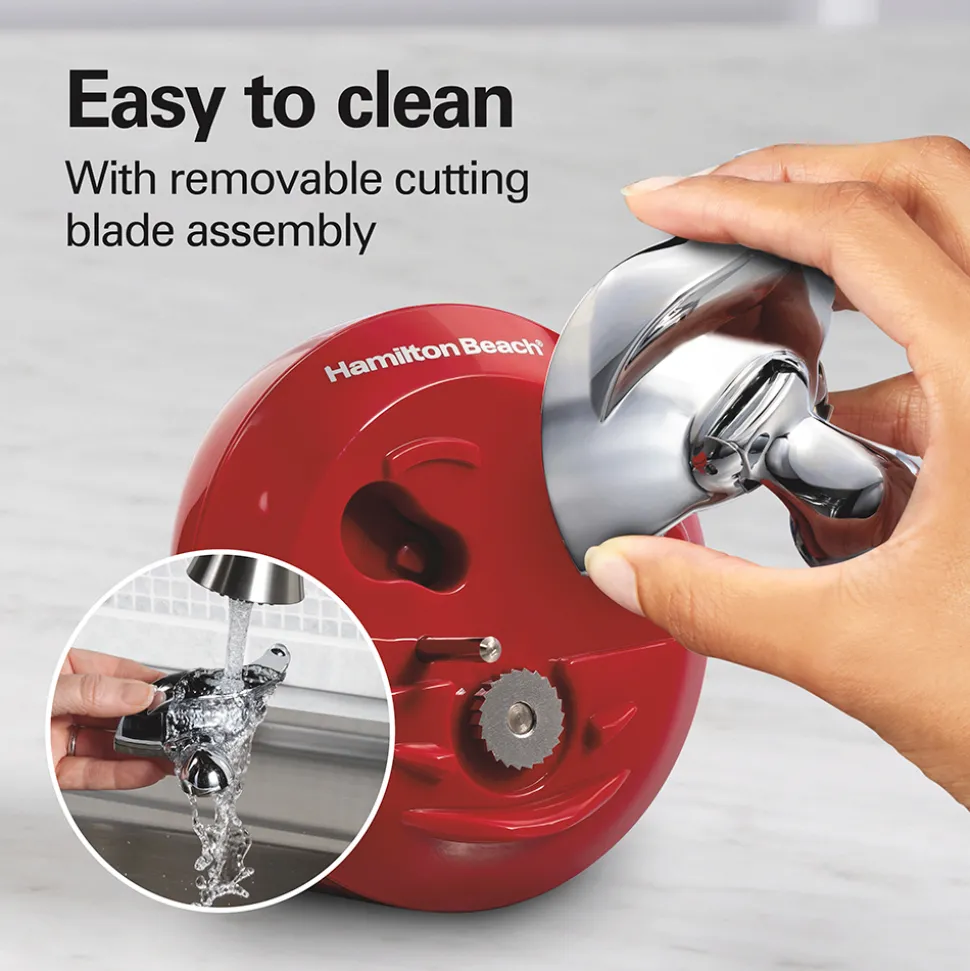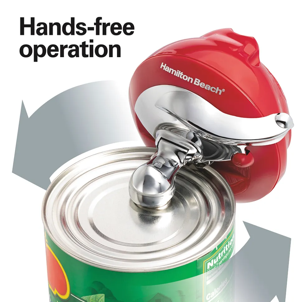 Opening cans is no longer a chore. This Hamilton Beach can opener quickly and easily opens cans sizes from small to extra-large.